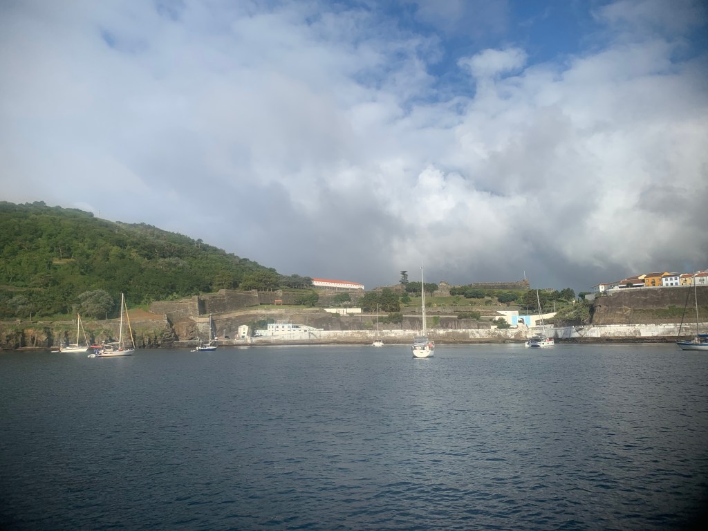 Rest and Recovery or Repair and Recreation. Probably all four! It was a lovely peaceful place to recuperate from the Atlantic crossing. Luckily it got warm and the sun came out as we had a lot of drying of the inside of the boat to do and a list of jobs: making a new deck can stowage board as the port side one had been broken by a wave, fixing the engine room door, generally securing stuff that had worked loose, such as the anchor connector (😮), the aerial array, removing weed from the rudder. Also exploring the island, lots of historic sites. Everyone here is so friendly and helpful.