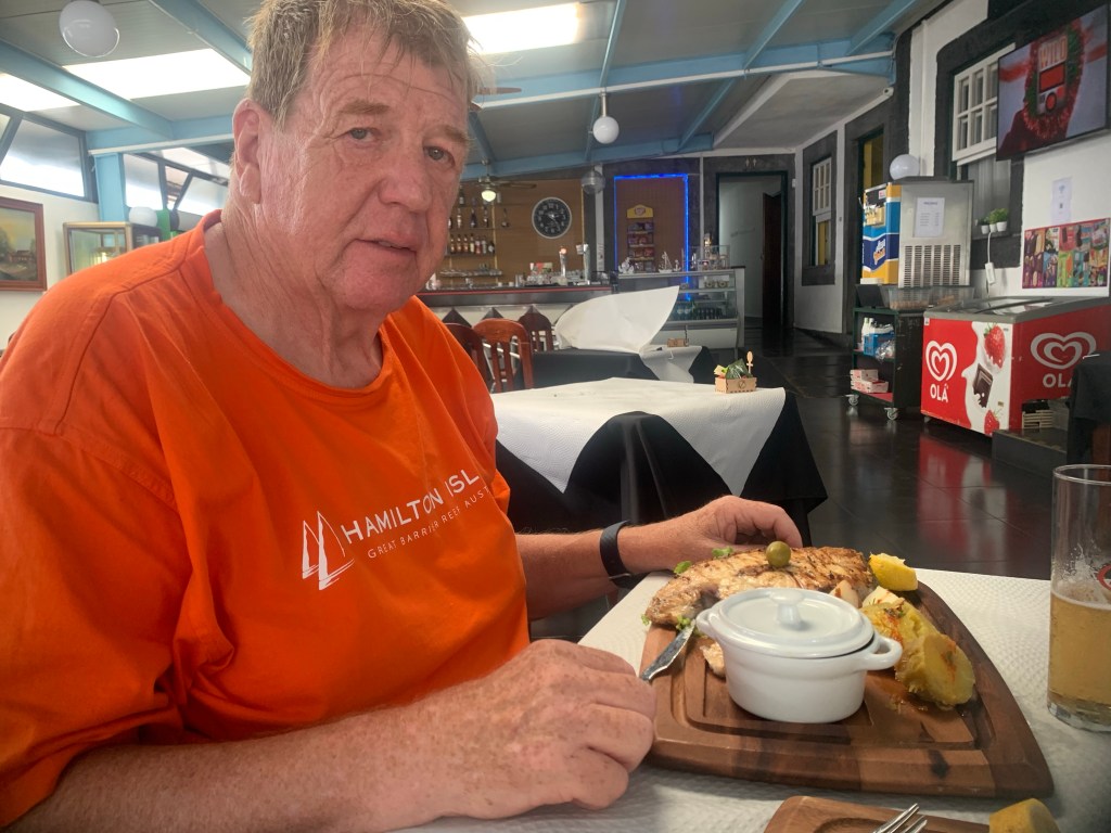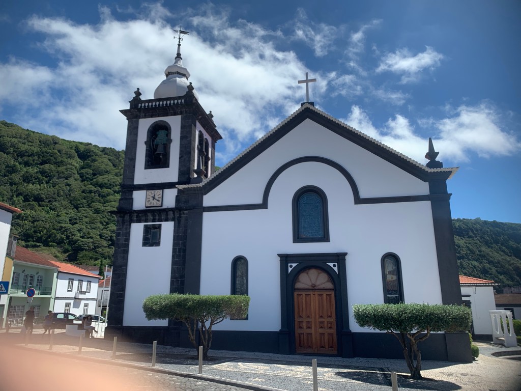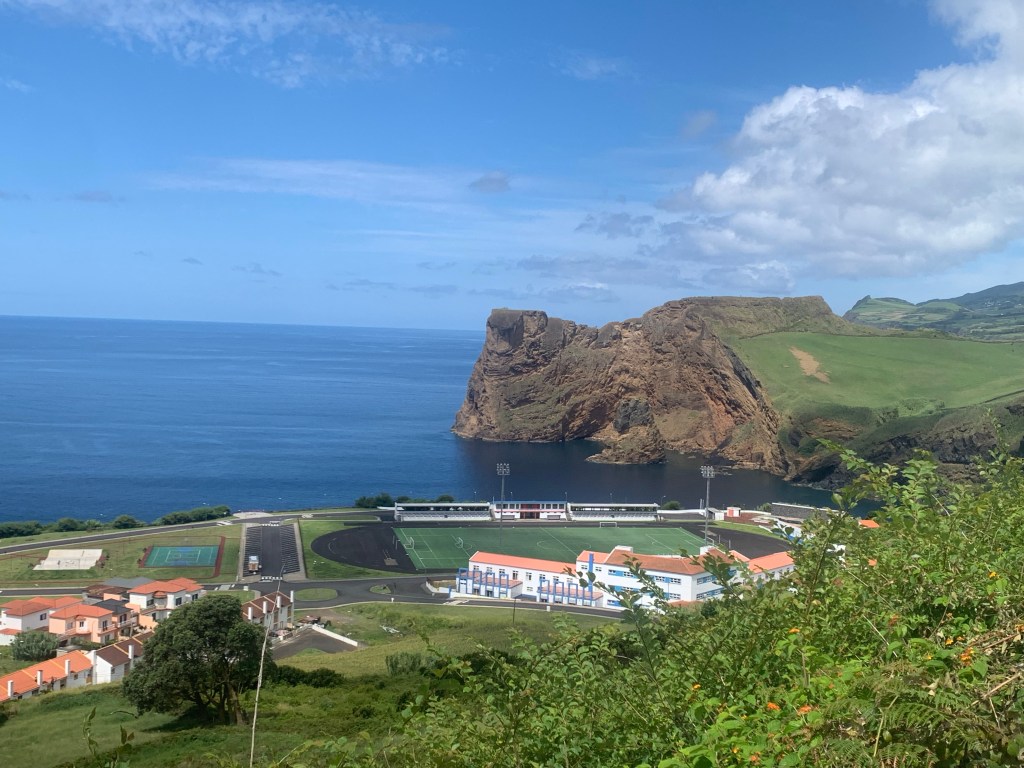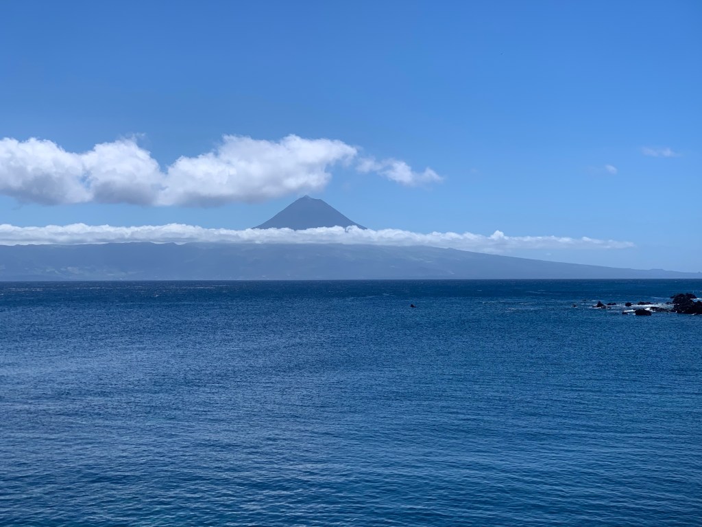 Sao Jorge is of course Saint George. Velas is a picturesque little town, the usual narrow cobbled streets, pretty churches and buildings. Views of the peak on Pico at every turn. There is a good supermarket, the tourist information was helpful and we went to the museum. There are a couple of nice swimming places and snorkelling over the rocks by the anchorage I saw a huge ray as well as lots of colourful fish. Anita ran up the hill while Steve did the shopping. The steep hill by the anchorage is full of land birds singing all day, but as it gets dark the Corey’s Shearwaters come back from hunting at sea to feed the chicks making an amazing (but conversational) cacophony. We’d have liked to do a tour of the island – reluctant to leave the boat at anchor unattended for too long – and include a visit to the cheese factory, but we did buy some cheese and enjoyed local fish for lunch at the Clube Naval.