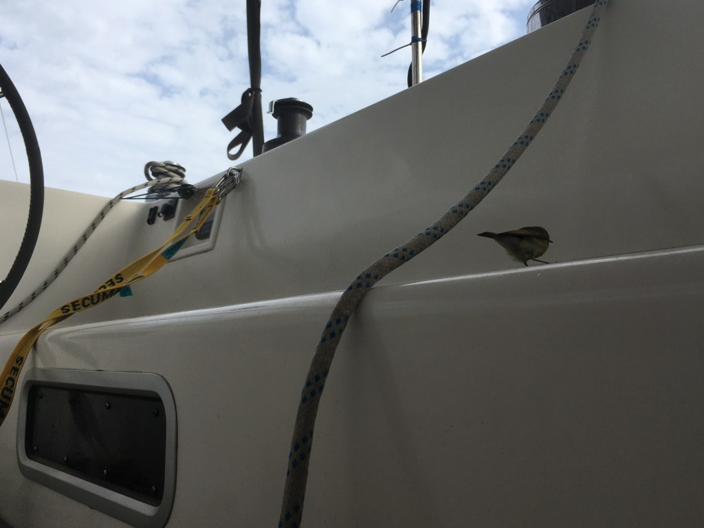 Horta the night before we leftIreland is out there somewhere?Small bird that joined us (Willow Warbler)Perched under the spray hoodIn Lawrence CoveReturn trip this time in green