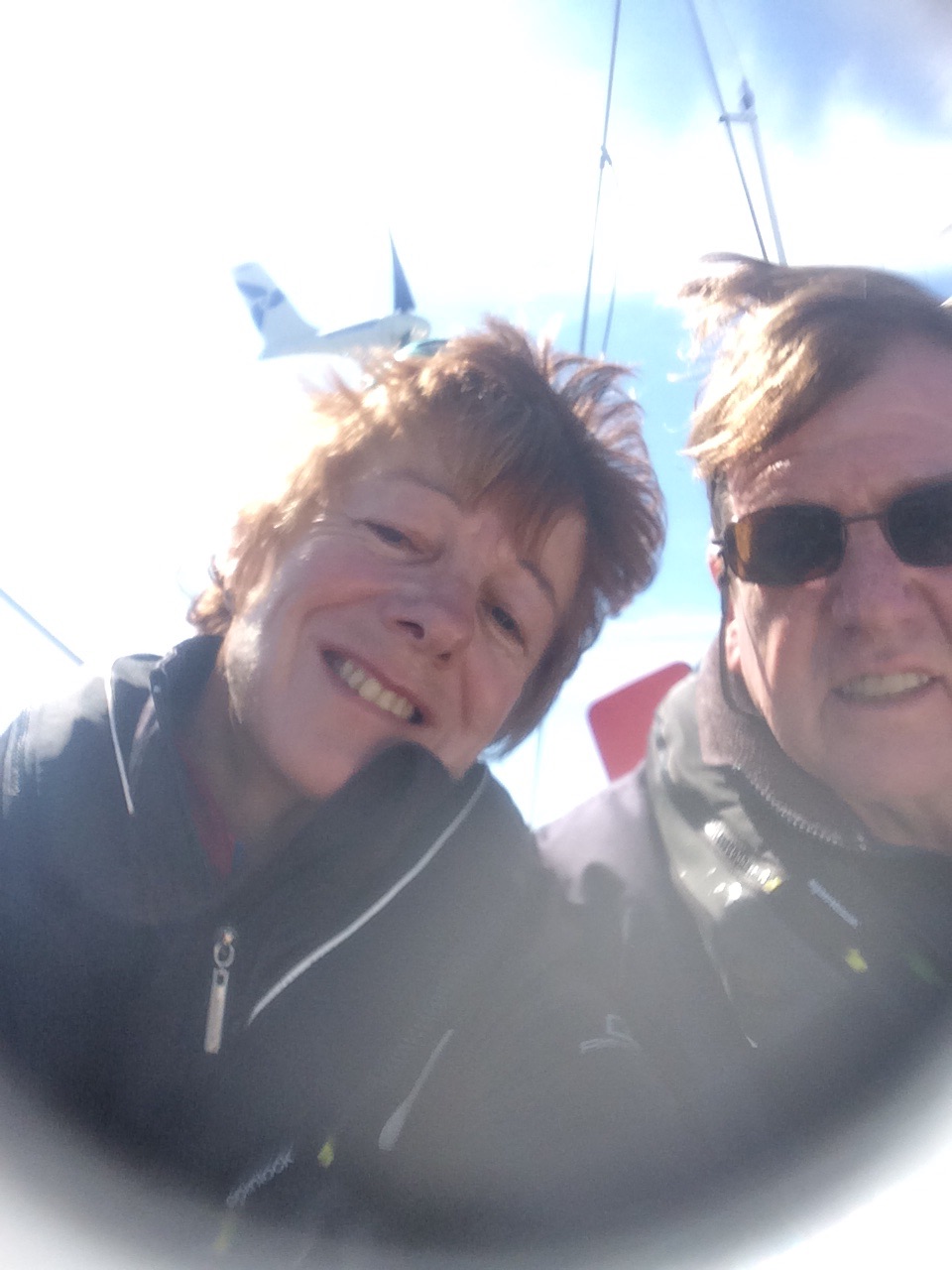 We were beginning to wonder if we had fuel to motor the whole way to Spain, but got wind to sail about midnight and we are still bowling along in a moderate swell. Nothing to be seen but waves and grey sky, no ships on the AIS. It was cold on deck at night (though warmer than the Irish Sea) so fleeces etc are not packed away yet. Watch system so far is Steve on duty 2100 to midnight (after dinner), Anita midnight to 0300, Steve 0300 to 0600 and Anita 0600 to 0900 (breakfast time) with both up during the day. Seemed as though generally we were to sail at night and be becalmed and motoring by morning.