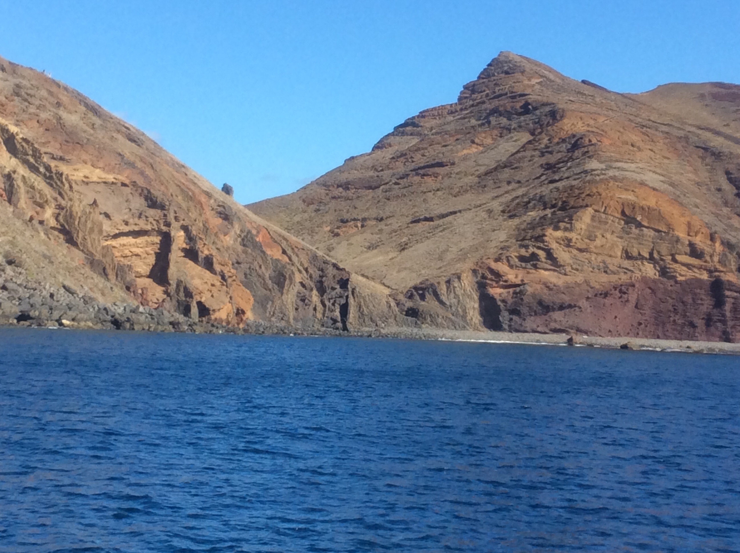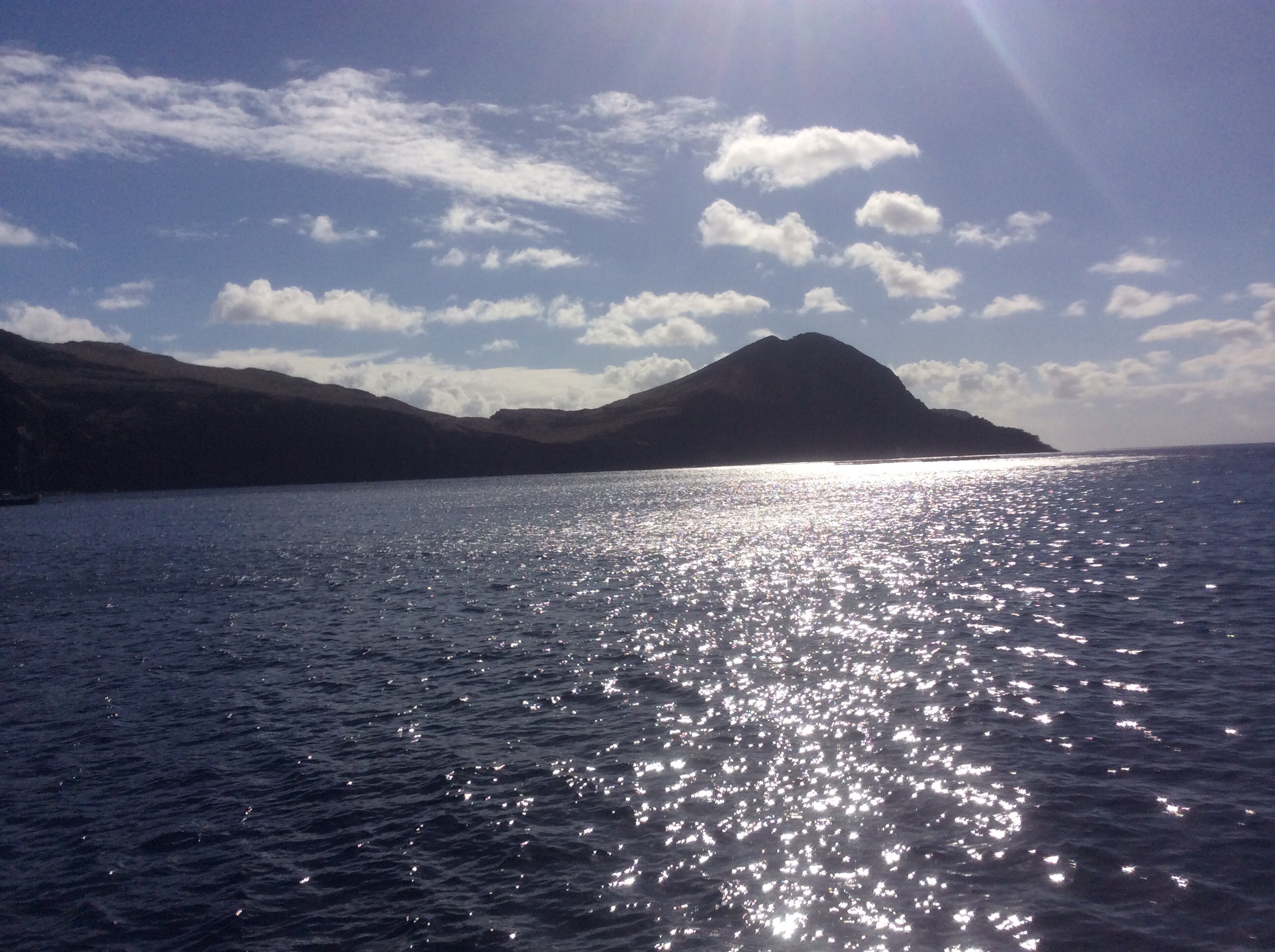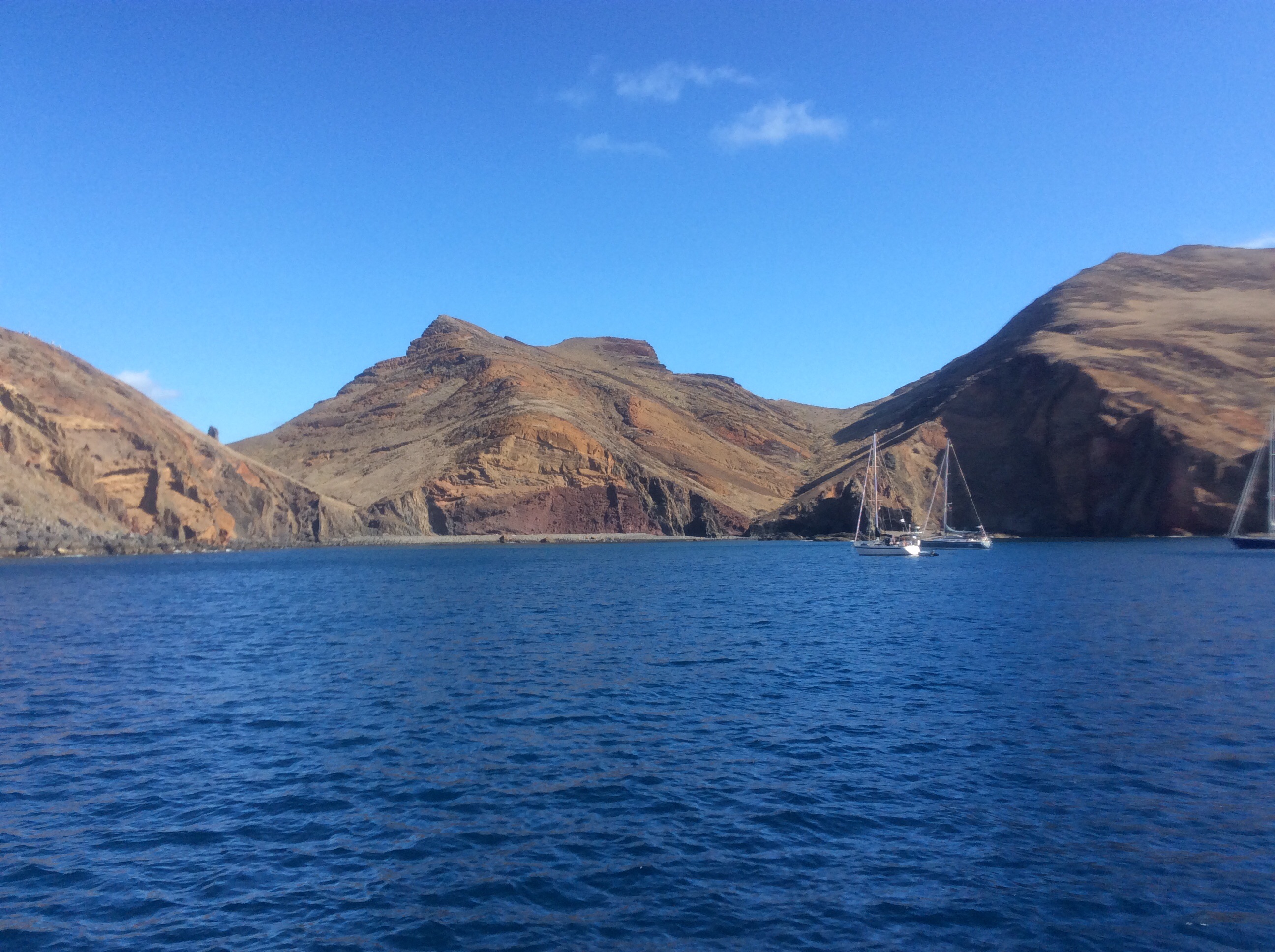Just sitting in the cockpit of an evening drinking Madeira (sec) in Madeira. We spent 2 nights in a beautiful but somewhat rolly anchorage Enseada de Abra, then came round the corner to this marina this morning. Water warm and clear so I was able to swim round the bay where we are anchored watching pretty coloured fish close to the rocks. We watched a procession of decorated fishing boats, lots of flags, lots of folk crammed aboard, and a priest and some sort of icon of a Saint on one of them. We plan to get the bus into Funchal tomorrow, maybe look at the botanical gardens and so on.