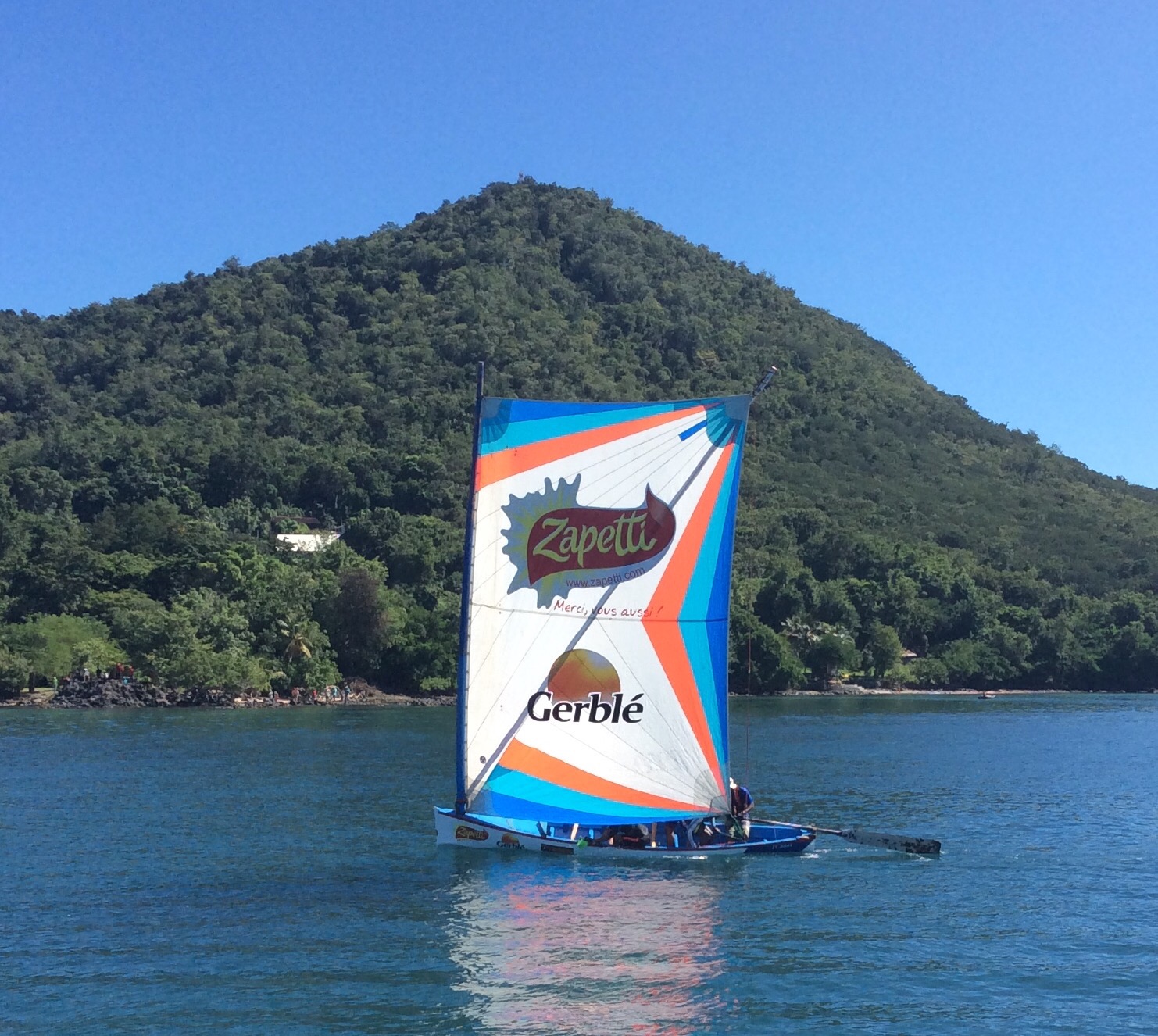 Marin is a very busy yachting port. We moved to a more scenic anchorage for the weekend. On Sunday morning we found ourselves with rather a too good a view of the local Yole racing (see pic). These local boats had quite high-etc square sails and 3 to 6 guys in the crew energetically paddling when required to supplement the sail and get up to windward, or hanging right out off the side on outriggers to balance the sail. We had been sitting peacefully at anchor having been ther all night and with the appropriate day mark (a black ball) displayed when the launches laid a huge racing mark right off our bow – well about exactly where our anchor was, making it difficult to move anyway. They didn’t come to speak to us at all, but after the start of the race seemed to be indicating it would be better if we moved back a bit, so we let more chain out to drop back away from the buoy. All fine for the first pass, but then they were coming back from the other direction uncomfortably close. So before they started the next race we got the anchor up and moved across the bay to St Annes. Luckily it was just clear of the buoy, but we were practically touching it as we got up the anchor.