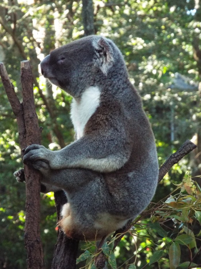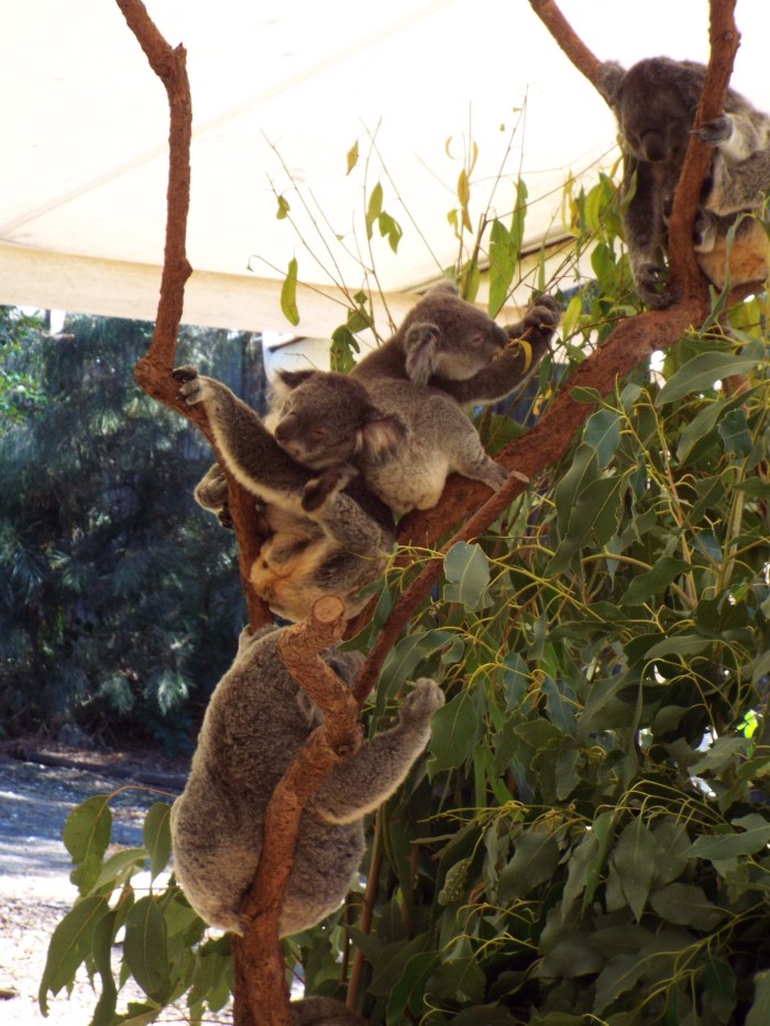 I think I remember Bill Bryson’s book “Down Under” ( or maybe it was Clive James?) starts off saying that “Australians delight in telling you about all the the things in their country that can maim and kill you”. This is true, folk seem to enjoy warning you about sharks, crocodiles, spiders, snakes, killer jellyfish, dingos, even kangaroos. The male platypus apparently has highly poisonous barbs on his hind legs. But when a friend reported that someone told them that Koalas were dangerous – well that’s crazy. Anyhow we spent yesterday at the Lone Pine Koala Sanctuary up the river from Brisbane. As well as lots of lovely Koalas (that are without exception impossibly cute) we saw dingos, kangaroos, platypus, Tasmanian devil, a very sleepy wombat, various lizards, various birds including a tame white bellied sea eagle and some owls, the only creatures that did not show themselves were the crocodiles. The Koalas were either sleeping or eating eucalyptus.