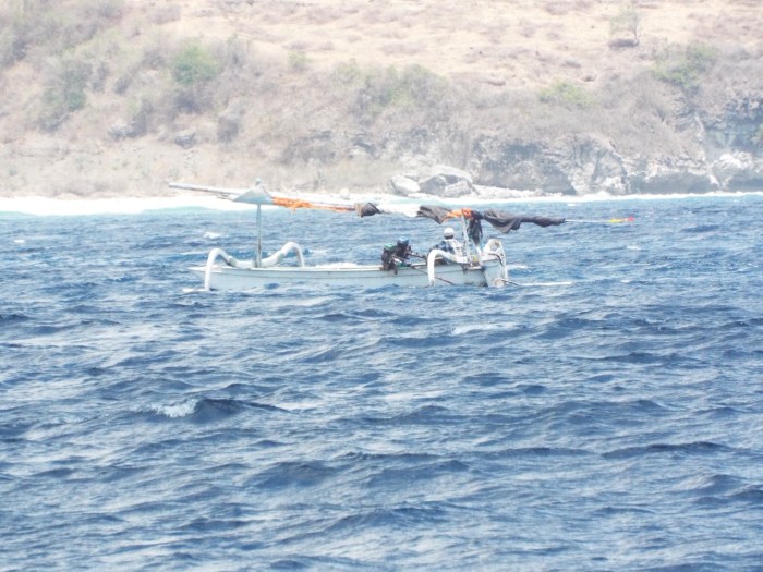 We leave Lombok this morning after a whirlwind few days. It was a very slow, hot and windless passage from Darwin. Timshel does not carry enough fuel to motor for 900 miles, so after the first few days the rally fleet left us behind as they motored on, and we had to do our best to sail in very little wind. We did make the finish line just before the closing time (more than a day later than the next slowest boat), and we still had enough fuel. Luckily our timing was good for the passage up Selat Lombok between Lombok and Bali. Boats that got this wrong found up to 8 knots against them. But we benefited from the info and advice mailed back by the first boats to finish, creeping up close to the shore we benefited from a counter current of at least 3 knots. We were so touched by the amount of kindness and support we received from this new group of yachts for World ARC 2018 that we have just joined – 2 boats were even offering to go back to the Finish line to bring us fuel! This support and camaraderie between the boats is what World ARC is all about.