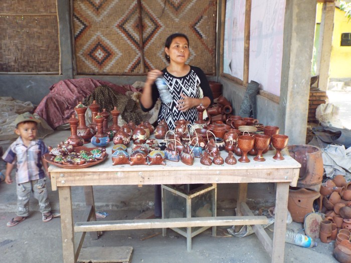 We did a tour round the southern part of the island, which is relatively undamaged by the recent earthquakes. Not so for those with more time who toured to the north and saw the devastation with whole villages flattened. It is a beautiful country with happy and hard working people. Who go about on flocks of small motorbikes! We got a ride in a pony and trap, and went to see a colourful market, local villages and pottery being made, and a temple – the people are Muslim or Hindu and this temple is sacred for both. Much of the land is very fertile, lush and cultivated. But even in the south there are many tents – people are afraid to sleep in their houses in case of another quake, and of course the tourist trade has been badly affected.