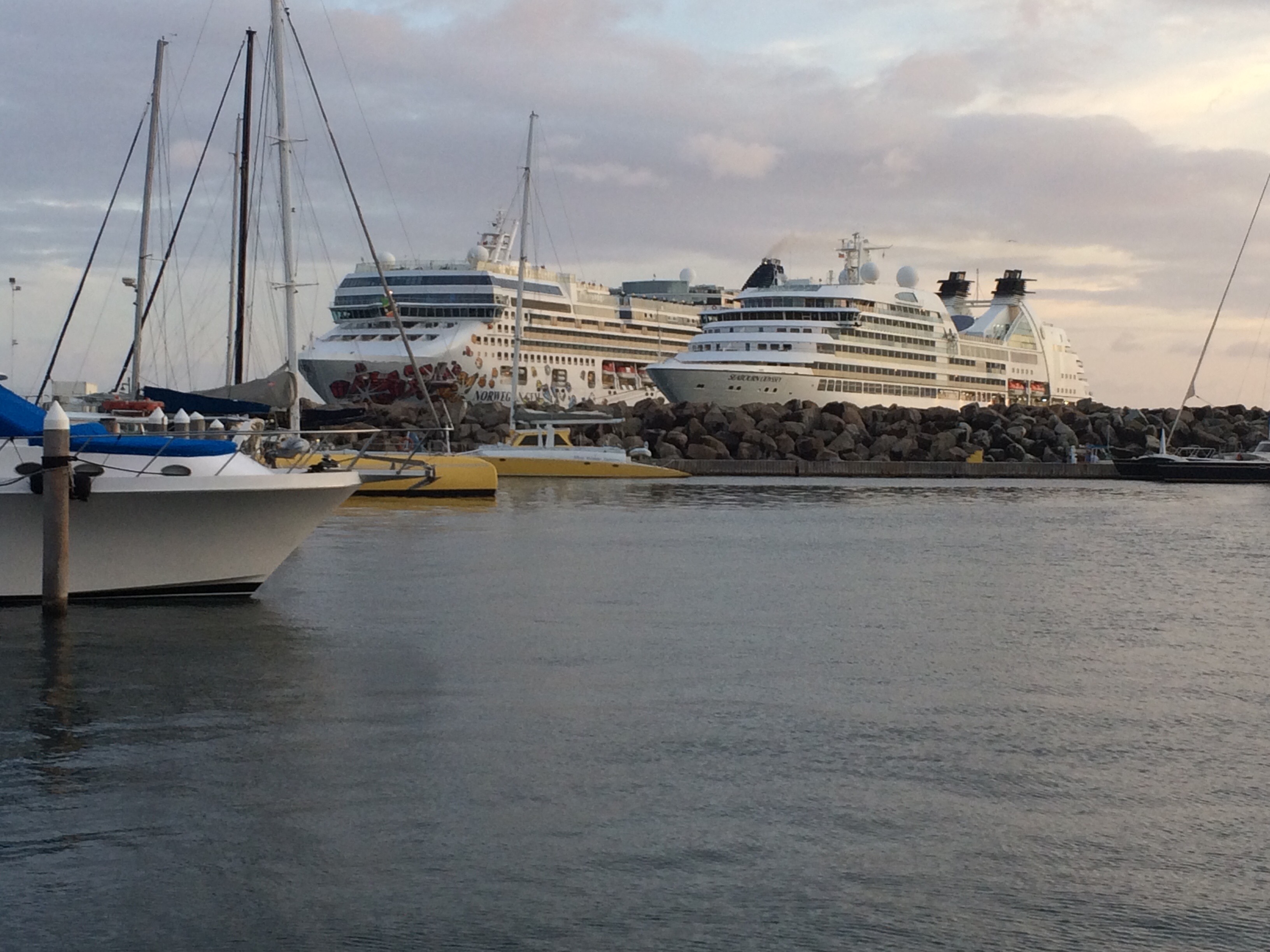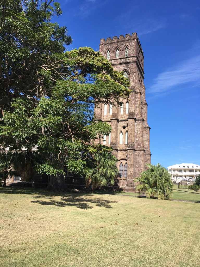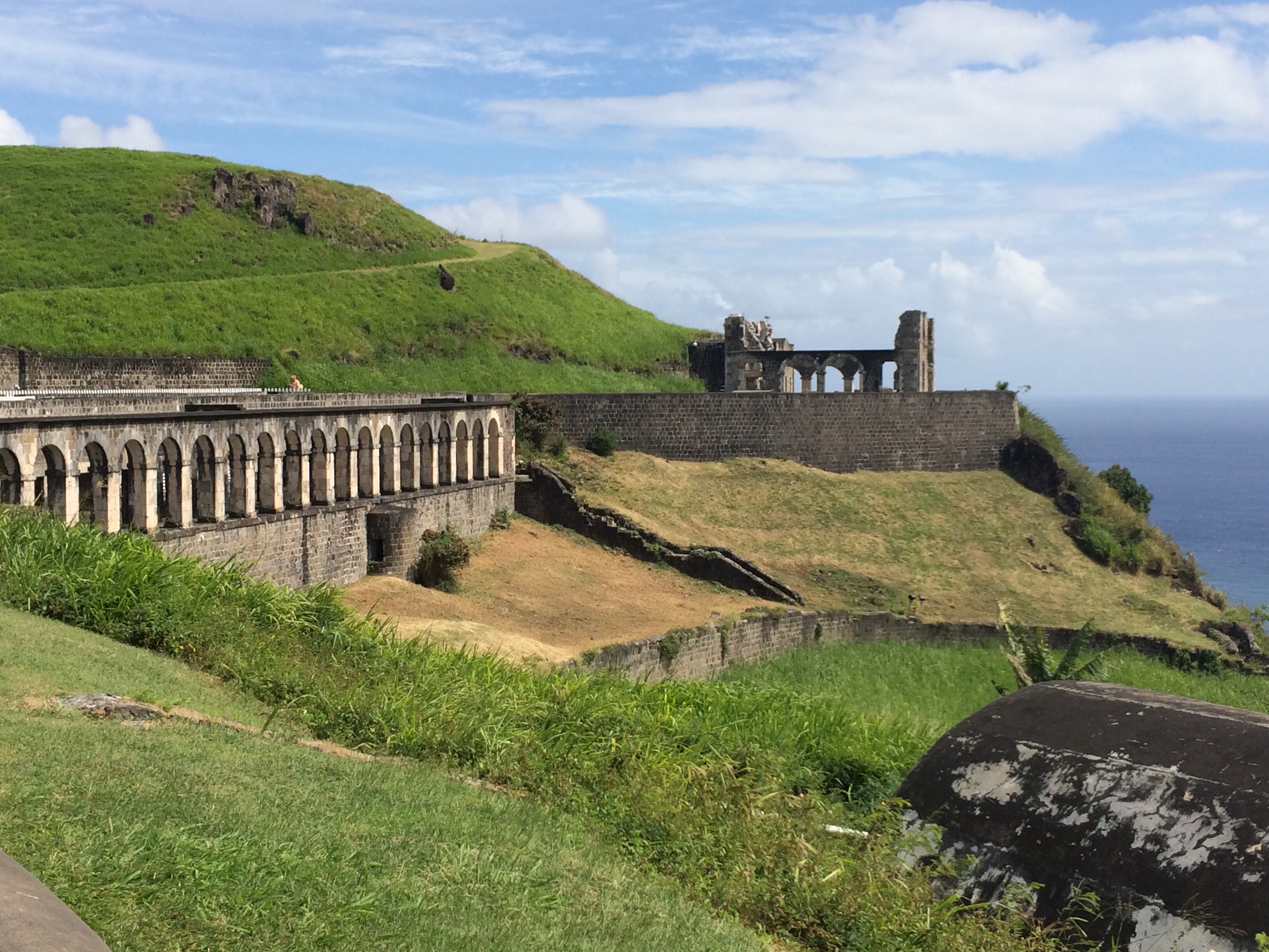We sailed on from Antigua to Nevis and checked in with Customs etc there. We visited this island late last year so quickly sailed on to the sister island of St Kitts (same administration). There was some big swell and wind forecast for the following week so we ma de lots of phone calls to book a berth in Port Zante Marina at Bassê Terre. It’s a small Harbour with Dutch type box berths around the edge with some pontoons. Most of the boats are either for local fishing or trip boats or party cats. When we came in it was flat calm and we got directed to a nice berth alongside a big pontoon. Unfortunately by next morning when they insisted we move a stiff breeze was blowing. Our new place was one of the box berths, inconveniently across the strong wind, although marina guys came to take our shore lines what was needed was a rib to push us into place and to take lines to the poles at the back and it was all really stressful. Once we’d recovered from this we went for a look round the historic city of Basse Terre. There were 3 big cruise ships in, they can take up to 4 at a time. By this time it is 9 March, and the news of the Coronavirus spreading from China to Italy and the rest of Europe is starting to get serious, social distancing starts to be a thing. Slightly worrying going round Basse Terre among crowds of folk off the cruise ships. Next day we got a taxi tour to the Brimstone Hill Fort looking out over the coast furthered the island. Very impressive and almost nobody there. We also looked down on the Boatyard where they have a travel hoist and dig you a custom pit to put the keel in. On the way back we visited some gardens and the Batik studio.
