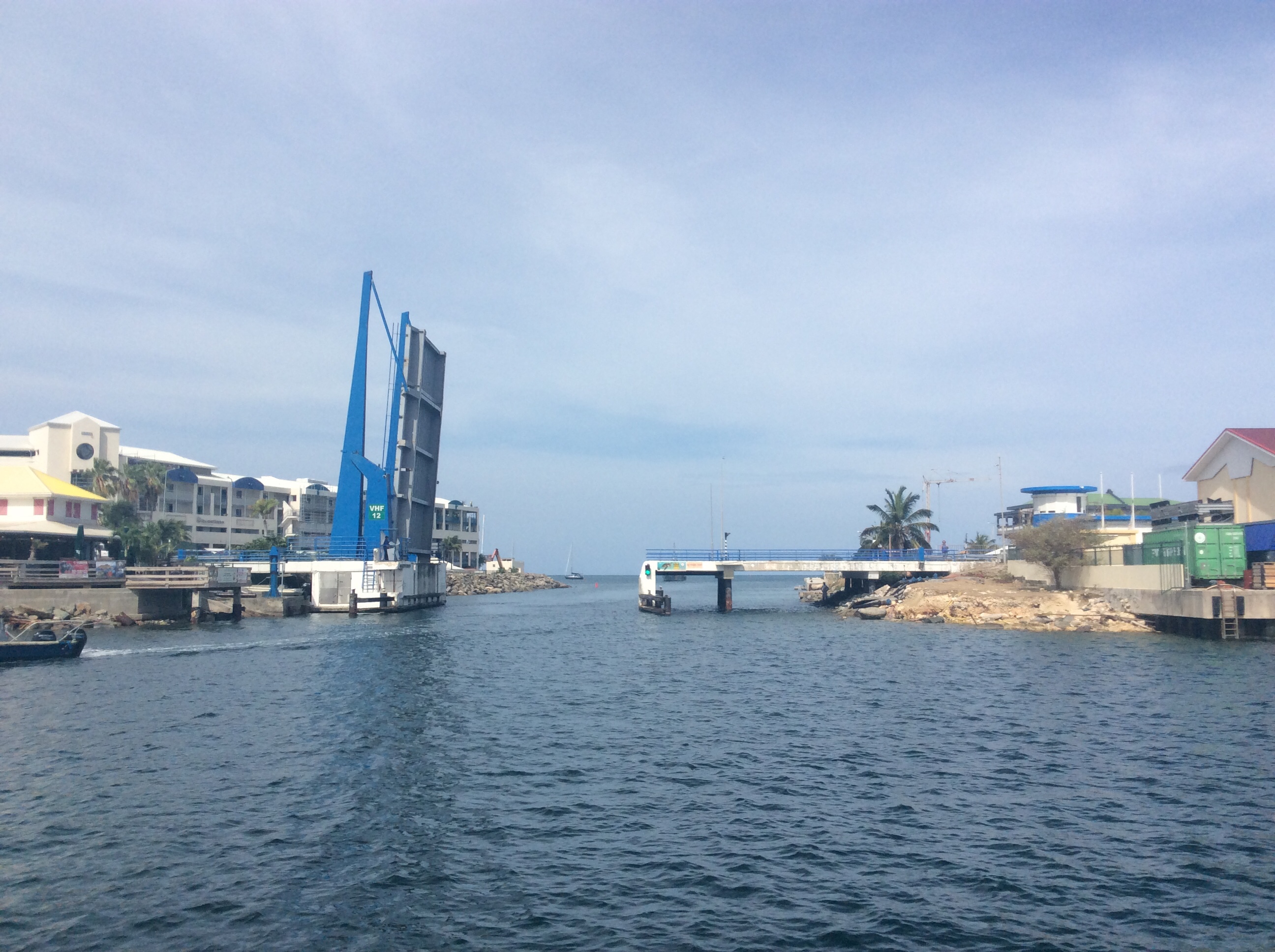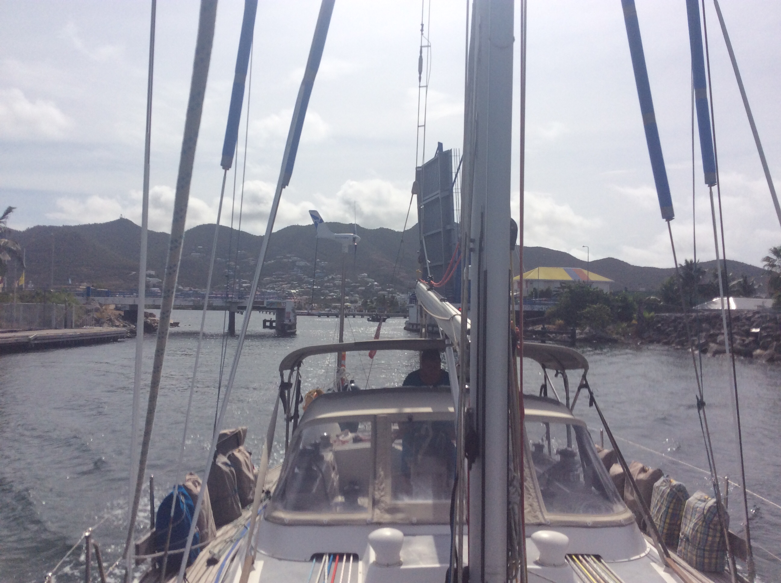 Boats had been setting off for Europe for a few weeks now, the time for departure was upon us, but what of the weather? Apparently the Jet stream is in the wrong place (according to weather guru and friend Chris Tibbs) and we do not have the normal settled weather plan, and it looks like headwinds for at least part of the route. We delayed a week, then an extra day, Chris said although the weather wasn’t ideal it wasn’t that bad and nothing better expected in the near future. We had been gradually completing our preparations: Steve hoisted me up to check the rig, Jaco from Atlante h divers cleaned the hull and the prop, all deck gear was checked, diesel, cooking gas and water filled, laundry done. Although things had been gradually opening up including takeaways for instance and Sint Maartin had no recent cases of Coronavirus, we had mainly kept to ourselves apart from getting supplies at the supermarket and things for the boat from the Chandleries and hardware store, obviously it would not be good to get the virus while underway crossing the ocean. We got a taxi to Philipsburg to clear out for the next day (the driver had had no other work for weeks), filled out the forms for making an emergency stop in Bermuda – just in case, we did not intend going there, contacted the OCC (Ocean Cruising Club) Port officer at Horta in the Azores – where we did intend to stop, contacted the Police Commissioner at next door island Anguilla, who had just declared a 12 nm maritime exclusion zone, to request permission to transit through Anguilla Waters (at anchor on the opposite side of the island to Anguilla we were only 7.5 nm away). We said goodbye to Terri, Mike, Mic and Jay on Life of Reilly and Brian and Chris on Exile, the boats next door in the anchorage, also over the VHF to all the cruisers with whom we have shared the pandemic lockdown experience, friends whose voices we know so well who we have never actually met face to face. We had left plenty of time for getting the anchor up – after 10 weeks it was very well buried (luckily on the advice of Jaco we had let out a little more chain to allow the weed and so on growing on to be rubbed off in the sand for a few days), we were hovering by the bridge as the appointed time (9am) approached, and it opened! Of course we were still too slow for the bridgemaster who as usual was exhorting us to make better speed. The big coastguard boat was coming in. And we were free!