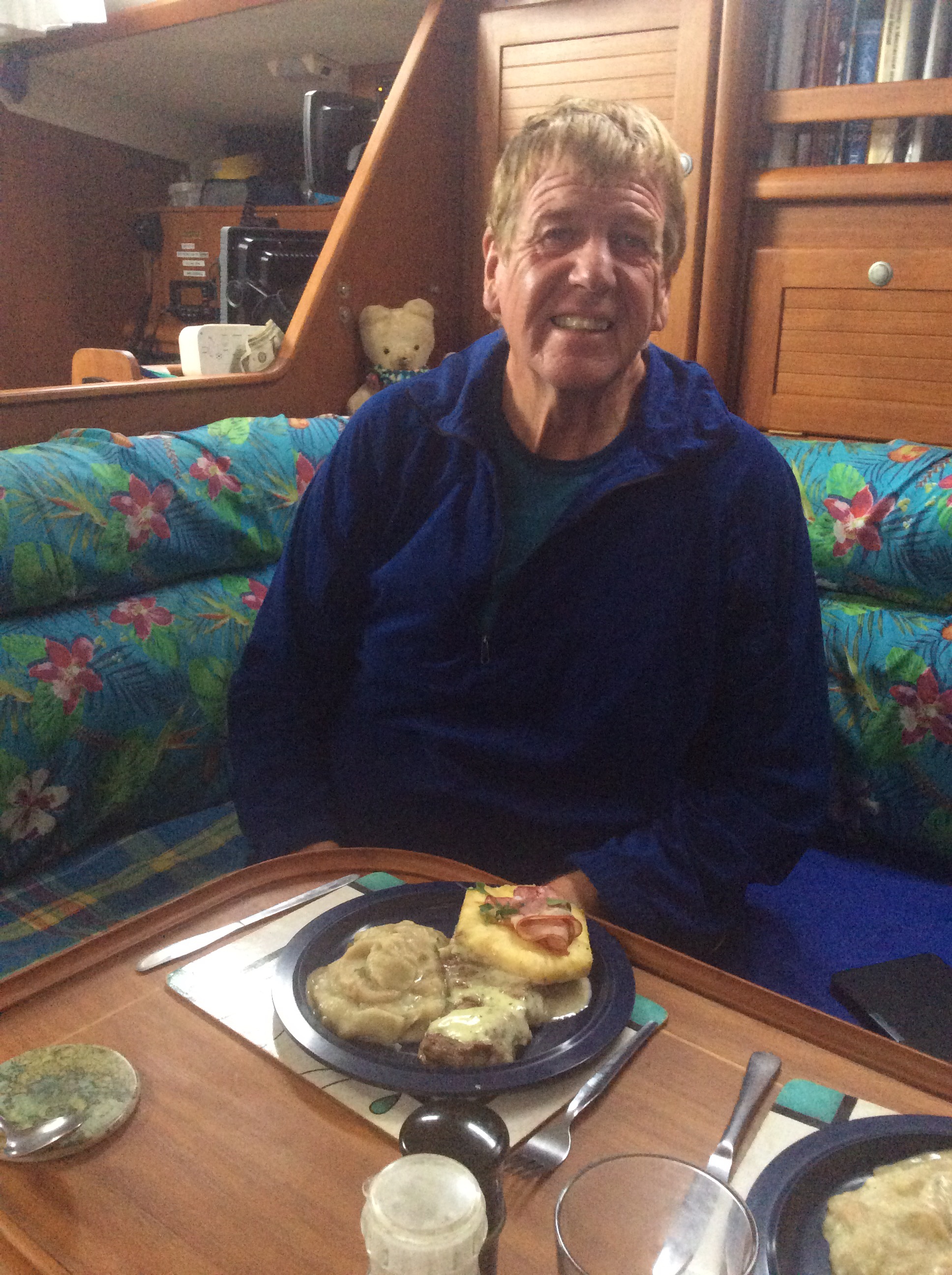 Some of the OCC boats already in the anchorage (that we’d been speaking to on SSB) called on VHF to welcome us – Mirafe, Altarama, Mojito. The RIB from Peter Cafe Sport came alongside. Duarte and friends have been enthusiastically and efficiently supplying the transient yachts sheltering in Horta’s harbour. The Azores and Horta are a major stopping place for transatlantic yachts and fortunately the authorities there decided to continue the tradition in the year of Covid19, even though yachts had to anchor out in the harbour and were not allowed ashore. It was a great relief to know in advance that we could stop for a short while and get fuel and food. The week before we arrived the arrangements changed, yacht crews could get a COVID19 test and then go ashore. I think there was one fast racing multihull that made the trip from Caribbean to Horta in 7 days, but everyone else took 2 or 3 weeks or more for the voyage so having been isolated at sea for that time the tests were going to be negative. On Monday we had to wait for the police boat to bring forms. On Tuesday we had to wait by the radio for the signal to go ashore for the test, Wednesday had to wait by the radio for the (negative) results, then to be called to the marina to check in, Thursday we got diesel and moved into the marina 3 out on the outer wall and could walk ashore. Meanwhile, Monday was Steven’s birthday, I messaged Duarte from Peter Café Sport on WhatsApp and they delivered dinner and groceries. A wonderful service.