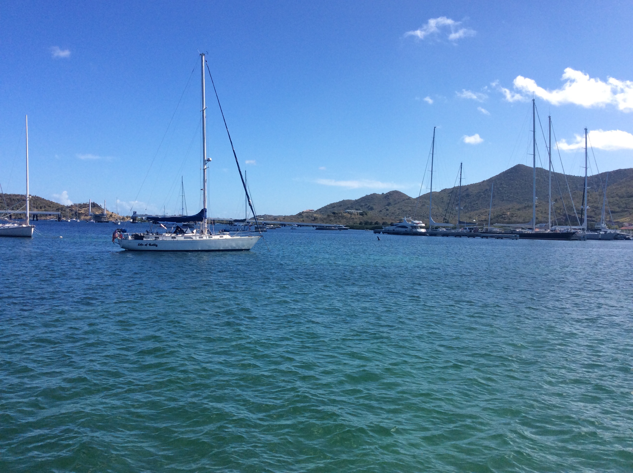 So was Sint Maarten a good place to sit out the Covid19 lockdown? Certainly we did not have a lot of time to make our choice. Once we realised the islands were closing realistically we had to immediately make for either Antigua or Sint Maarten/Saint Martin. We chose the Dutch side because it was more sheltered from the northerly winds in the immediate forecast, we chose to go into the lagoon rather than anchoring out in the bay because it would be generally less rolly, and the option probably would not have been available later on. Having made your choice you had to stay put. Sint Maarten is a relatively developed island, with lots of tourism by cruise ship, by air and attracts many superyachts but also caters for the smaller cruising yachts. Apart from the 2 weeks of 24 hour lockdown access to food supplies was good with the well stocked Carrefour visible from the boat. And of course there are the big chandleries Island Water World and Budget and other marine trades when they were allowed to be open. Sint Maarten did initially seem to have more cases of virus than might have been expected. Some locals on the forums said that the government hadn’t shut down fast enough, but in fact they were one of the first islands to shut the airport and to start with was more restrictive for instance than Antigua, which had less cases. Presumably they were unlucky, a few infected people travelling through the airport would make all the difference. Of course people complained but the government seemed to do a pretty good job keeping everyone informed and keeping control of the outbreak. Would we have been less restricted in other places – possibly, in the U.K. people were always allowed to go out to get food and for daily exercise. Could we have been somewhere with better weather – no probably not, it was warm and sunny with a nice breeze most of the time though there were some mosquitoes. Could we have been in a prettier place – possibly the Simpson Bay Lagoon, surrounded as it is by marinas, Casinos and other buildings is possibly not the most scenic. And we might have been somewhere swimming around your boat was more attractive, though in fact presumably due to lack of movement of large vessels the water did become very clear, and I did swim a few times, partly to check what was growing on the bottom of the boat and on the propellor. At one point on the French side gendarmes were fining people for swimming around their boat, so swimming was often not an option in the French islands. Some people proposed to stock up their boats and go off to an isolated anchorage somewhere to sit out the emergency. Some did try it. It sounds idyllic, but may not have been the best option. Can you really survive for several months with no contact with shore and no fresh supplies? What if there is an emergency or you get ill? Most isolated places do belong to one country or another and in many cases the authorities forcibly cleared boats out of the isolated anchorages. All very well if a place is totally inhabited, but generally the local people do not want random foreign boats turning up which they see as possibly bring infection and potentially using up their scarce supplies of food and their medical facilities. Many of the small island nations imposed more restrictions than the U.K. They did manage to control the virus successfully and by the time we left the Caribbean, had no active cases. Just as well as medical facilities to treat severe cases are limited, so while you might be in a safer and more pleasant place from the point of view of not catching the virus, if you were ill you would not receive the same standard of medical care as at home.