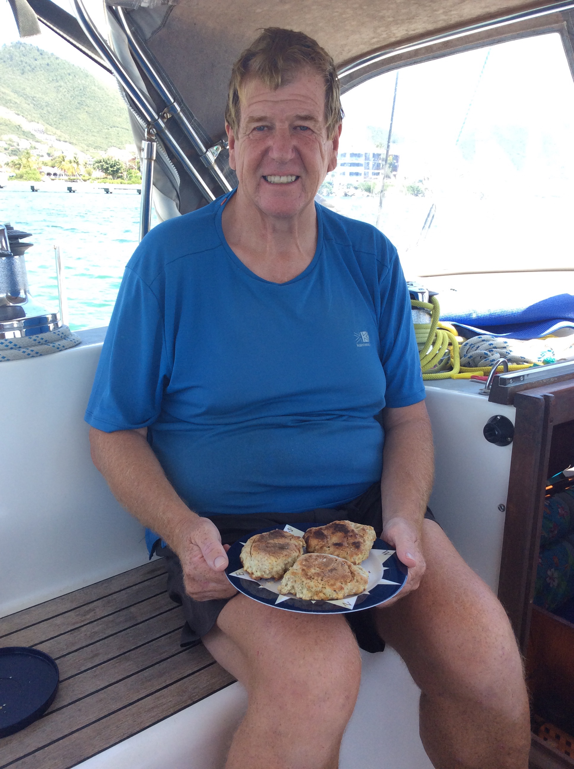 Tuesday 24 March, an edict from the Dutch side government was issued “Bunkering and provisioning in Simpson Bay Lagoon discontinued”. At first glance this doesn’t seem to have much to do with small yachts, but further on says crew of foreign yachts that remain at anchor or in marinas in Sint Maarten waters are requested (note the word requested) to stay onboard, no shore leave. Also that waters now closed to entry for foreign yachts. It seems that one or more superyachts really annoyed the authorities by coming in and allowing folk ashore without checking in. The general opinion from cruisers on the net was that this did not apply to the small yachts, but who knows – it seemed safest to keep a low profile and only go off the boat for essential shopping etc. I found the prospect of being arbitrarily confined on board very upsetting. March 30th it was announced that the border between the Dutch and French parts of the island is closed, that there is a curfew from 2000 to 0600 and there is now a form (which we downloaded and printed) for moving about on the Dutch side for essential shopping etc (similar to the French side form). This all seemed quite sensible, and we felt encouraged that we could move about carrying our ID and the official form. For many though the closure of the border was a serious thing, locals and cruisers all accustomed to free passage back and forth, a special permission endorsed by the police was now required to cross the border even for your essential job. It seemed to take a while for long standing cruisers to realise that they should no longer drive their dinghies to and fro across the lagoon. Most of the time there was nothing to stop them, except some days the Dutch coastguard boat went about stopping dinghies and often the gendarmes were active on the French side. There were rumours of big fines. The chandleries had remained open, presumably regarded as essential services, until they weren’t. We visited IWW on 31st March, intending to return on 1st April to buy things only to find everything shut down. There were more rumours of a bigger shutdown at the weekend, we should have acted on this and gone to Carrefour on Saturday for a stock up as on Sunday 5 April (when shops all closed) 24 hour lockdown was announced. Nobody to leave their house (or boat), nobody to be on the road or water, shops and supermarkets all closed. Except for key emergency workers and government officials of course. All very quiet, almost nothing on the roads except police cars, nothing moving on the water. Rene, the manager of IWW managed to get permission for their fuel dock to open 3 mornings a week to supply water, diesel and petrol, and they would take your garbage. Strict rules only 3 dinghies at a time spaced out on the dock and you do not step ashore. This was immensely helpful, we took every opportunity to fill our water cans as we didn’t want to run the watermaker in the lagoon. We had to do this eventually and in fact with lack of movement the water was very clear, you did however have to change filters more often. Easter was the next weekend, we donated the pack of little eggs we’d bought to Life of Reilly with two boys aboard as they hadn’t got any and shops were closed. We were reasonably stocked up, but could have done with more fresh vegetables and so on. Bread was a problem as the oven on our cooker didn’t work. Steve made soda bread farls successfully in the frying pan. Pressure cooker bread worked too but difficult to stop it sticking to the pan.