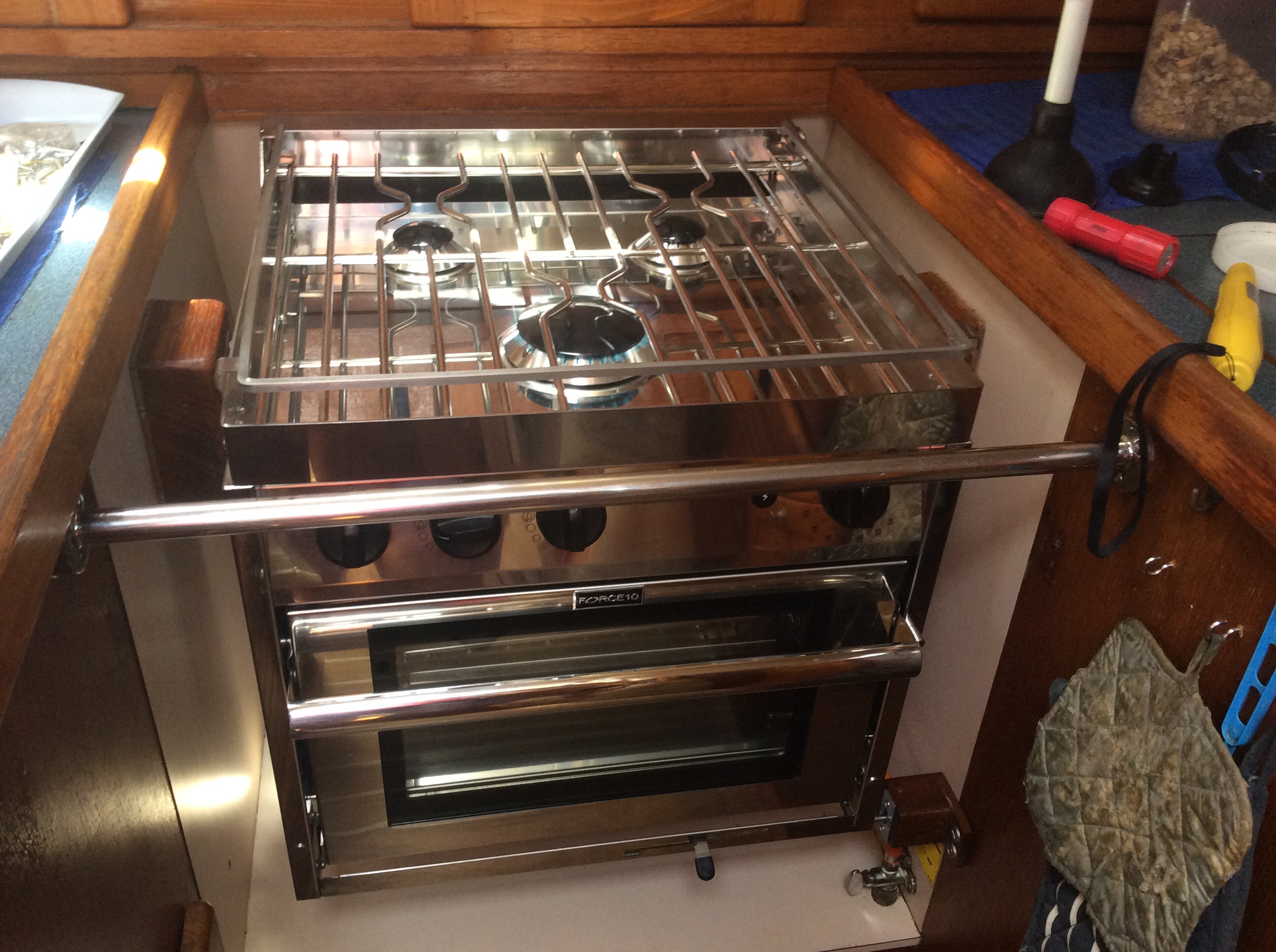 We arranged to go to Budget first thing Monday to buy a new cooker, intending to get the same Force 10 model we had before. It’s a long story about the stove. The oven thermocouple had failed, we’d carefully identified and purchased the spare and brought with us from the U.K., but it didn’t fit. Steve managed to identify the correct one supplied by Force 10 via a firm in Seattle, to be sent to a contact from a fellow rally boat to Nanny Cay. When the ARC Europe rally was cancelled and we weren’t going to BVI any more we got it despatched to Sint Maarten instead. But despite the tracking saying that it had arrived at the airport, it wasn’t delivered, even when things were opening up and other packages were arriving. When someone told us the tracking probably meant it was at the airport in Curaçao we gave up. Budget had new ones in stock in Sint Maarten. We got to examine the cookers in the Budget Chandlery car park (not allowed into the store) and decided to get the slightly larger model giving a bigger oven for the same price. It was delivered to our boat next morning, the delivery guy managing to sneak past the patrolling Customs launch – Tuesday was still a no movement day. We took out the old and put in the new, but unfortunately it was just a couple of cms too deep. It went in but would hit the trim when gimballed and the pans would be altogether too close to the cupboard door behind. Cold food that day until we could get it swapped for the smaller model which Budget did without demur next day. At last we had a shiny new cooker with working oven! Interestingly this was one item that was not cheaper at home, the Sint Maarten tax free price that we payed was the same as the U.K. and we got it tax free. (Note at beginning of July our package is still showing as being at Queen Juliana airport).