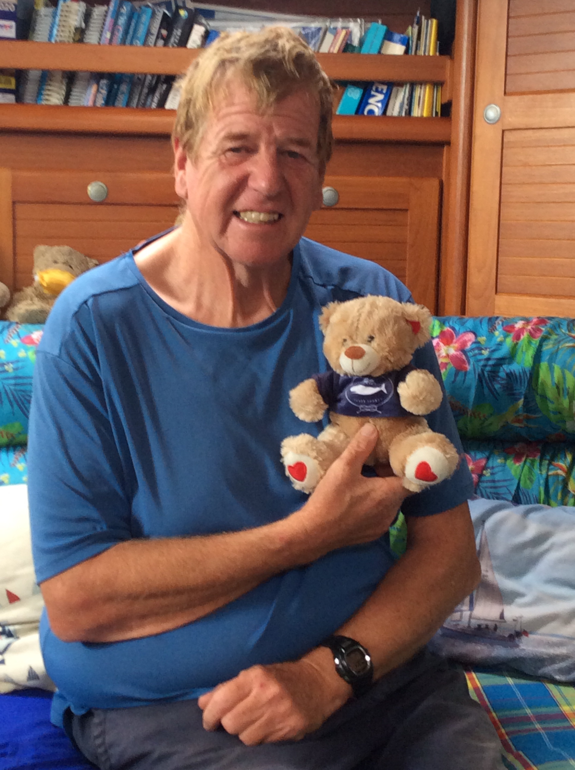 It was great to meet up with Tanya and Thomas of Adrienne, friends from World ARC 2018 rally. They had sailed from Martinique where they had spent lockdown, arriving a couple of days after us. They entertained us to a great paella on Adrienne (despite a few operational difficulties) and we had a really nice sociable evening. They also gave Steve a local bear for his birthday. Note: we had been isolated on board our boats for greater than 14 days on the way to the Azores and had a negative Covid test on arrival, so all could be considered safe.