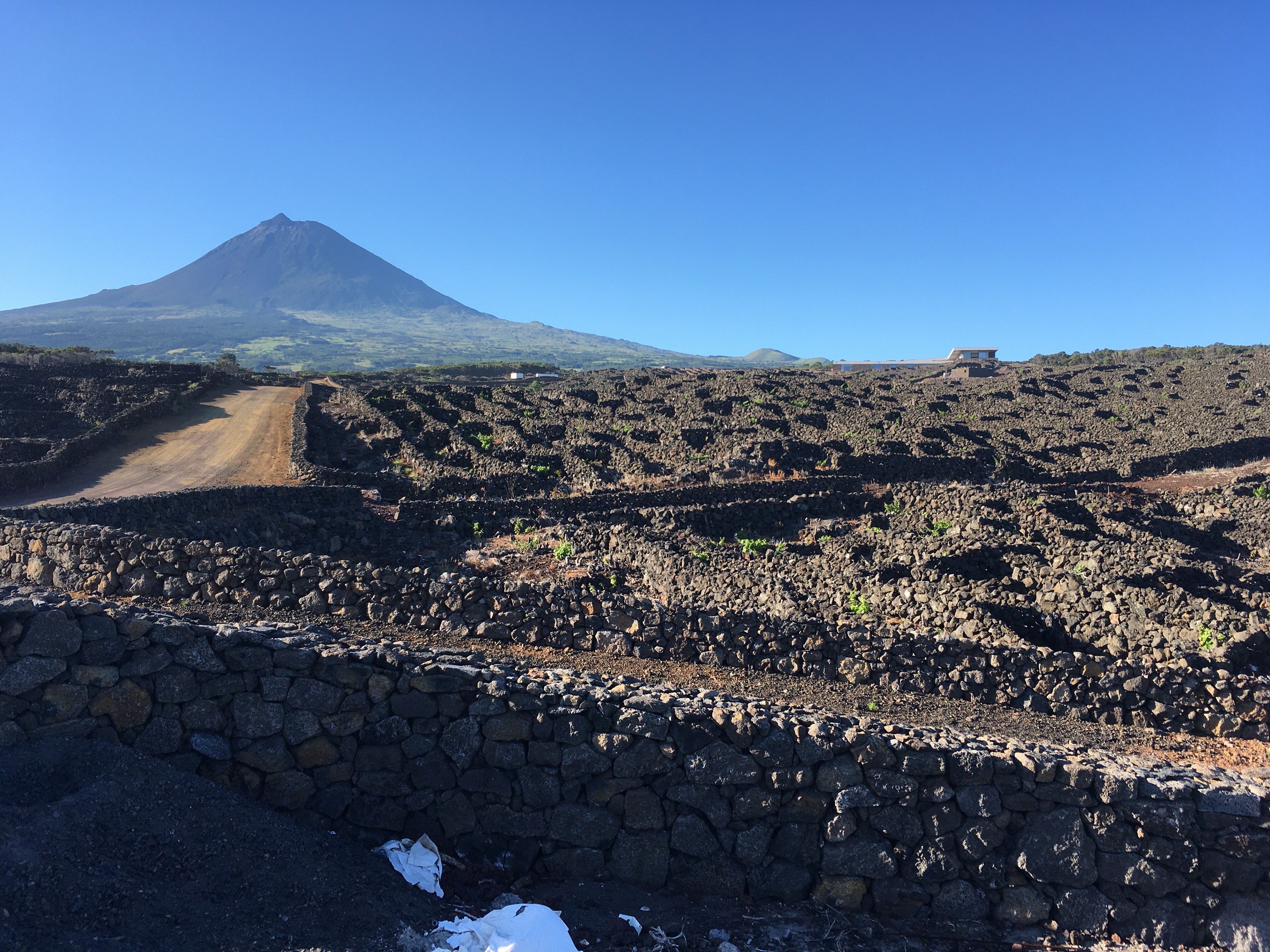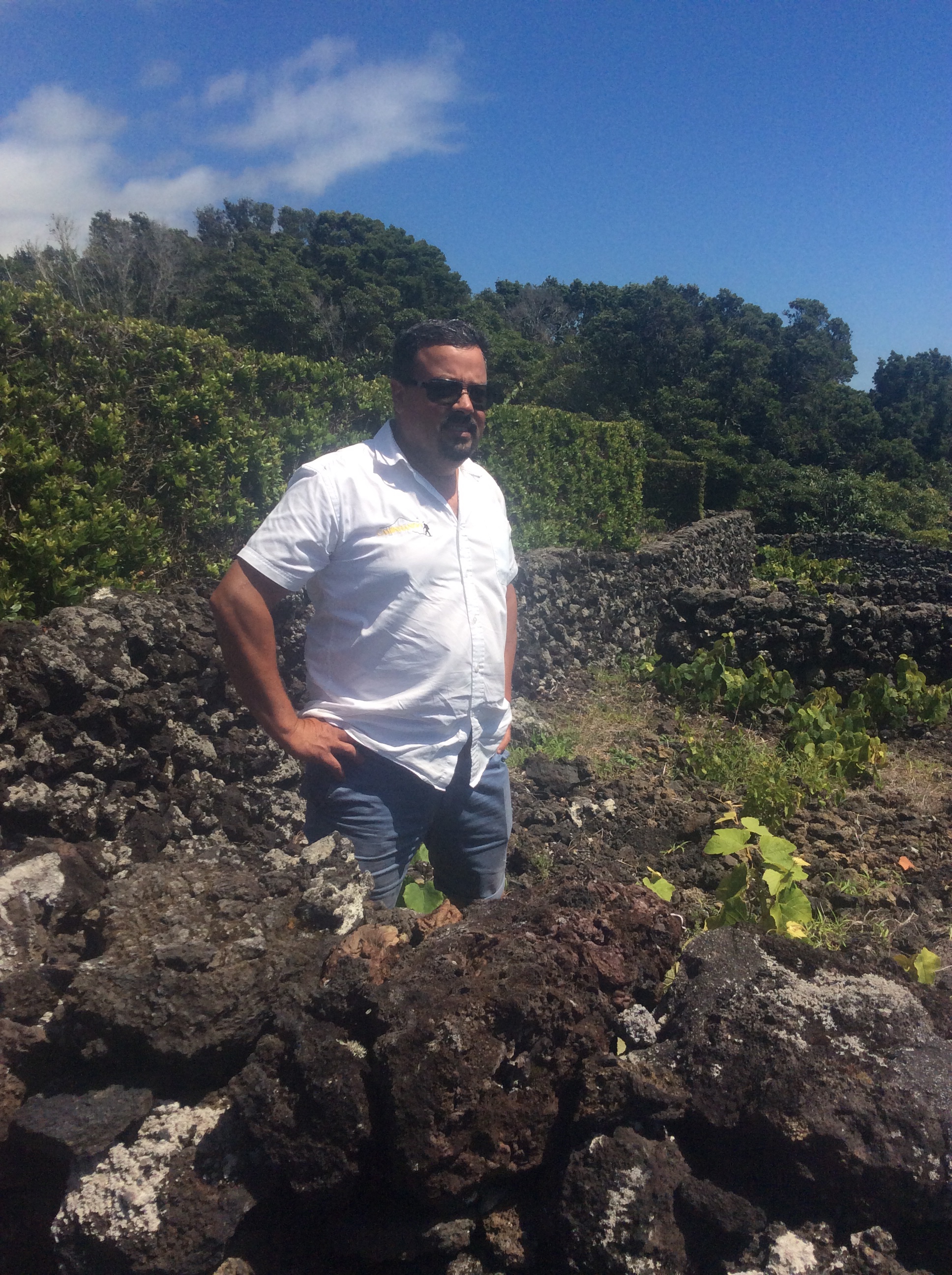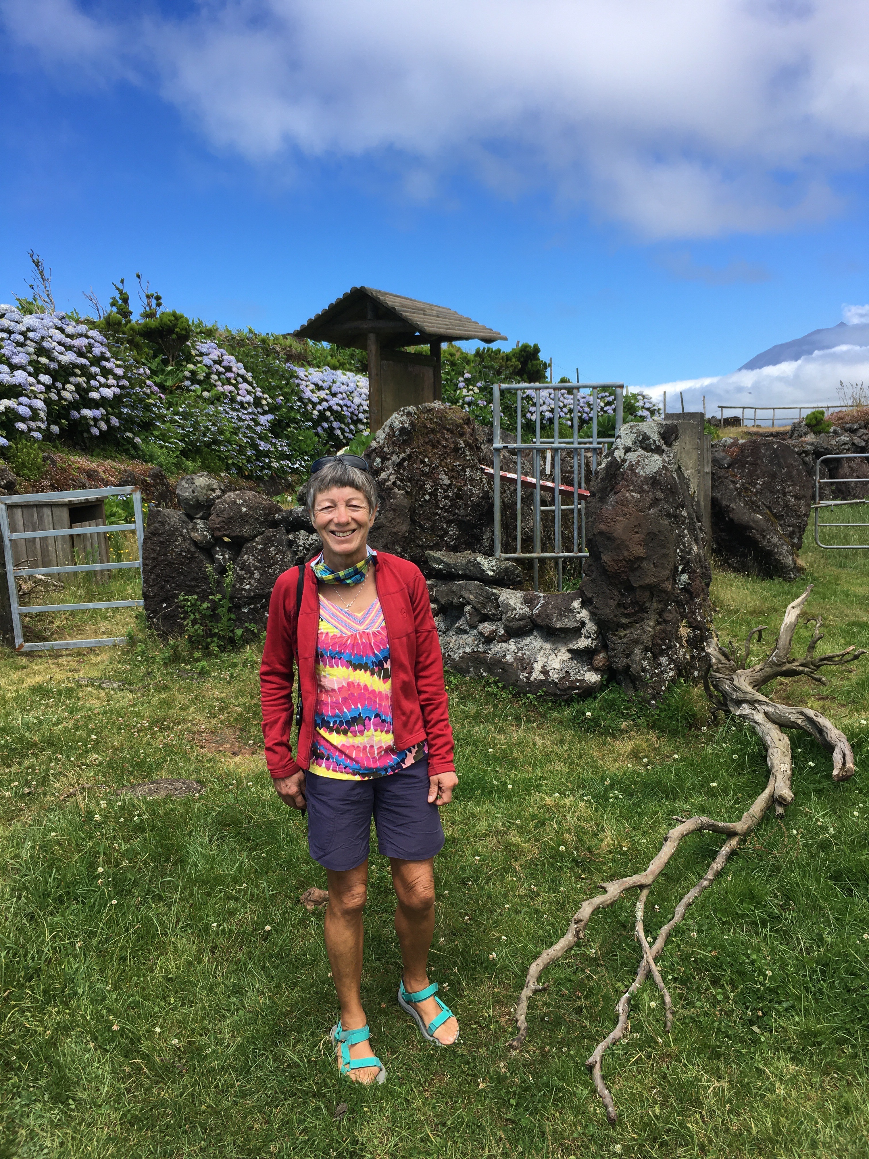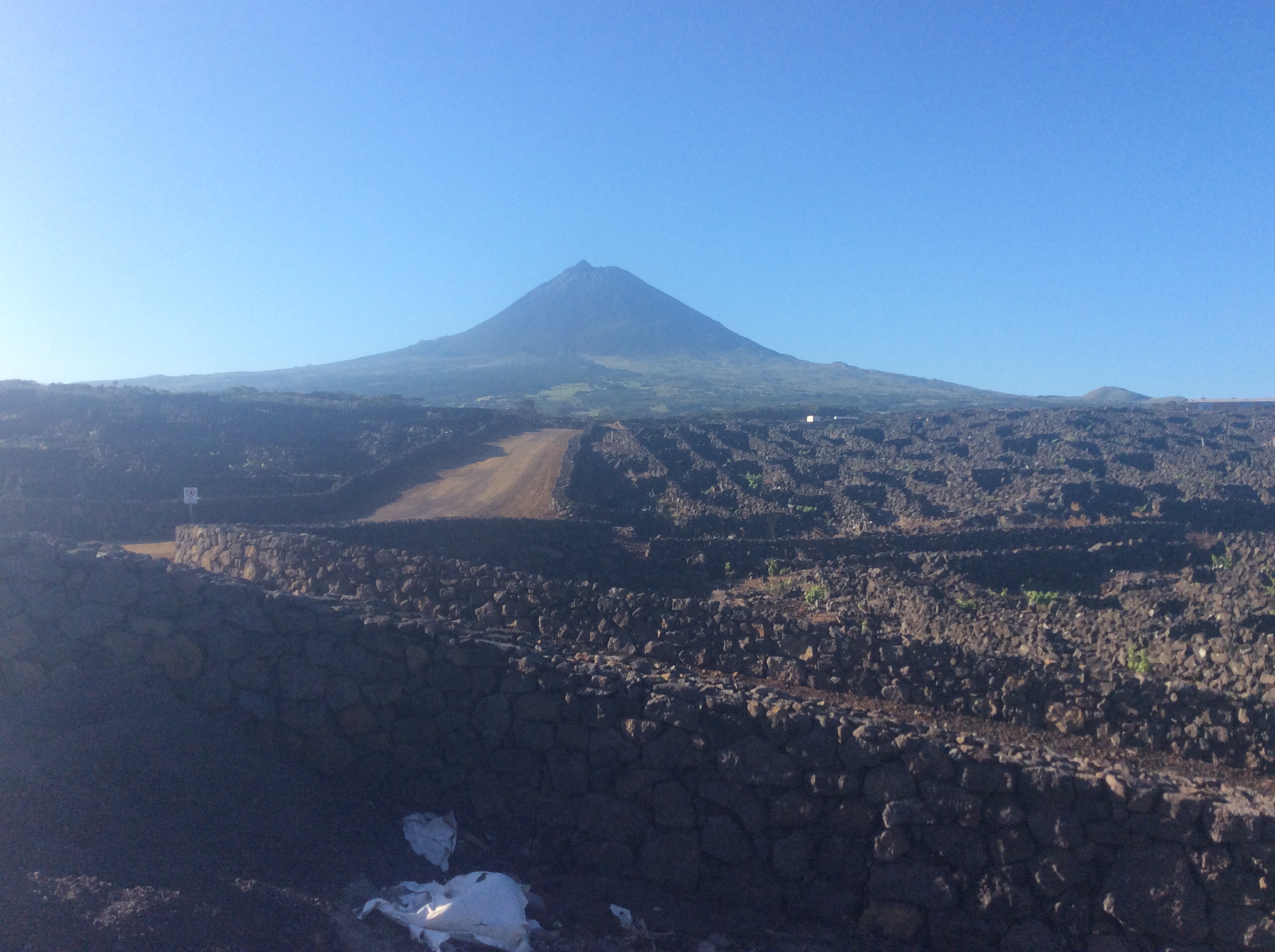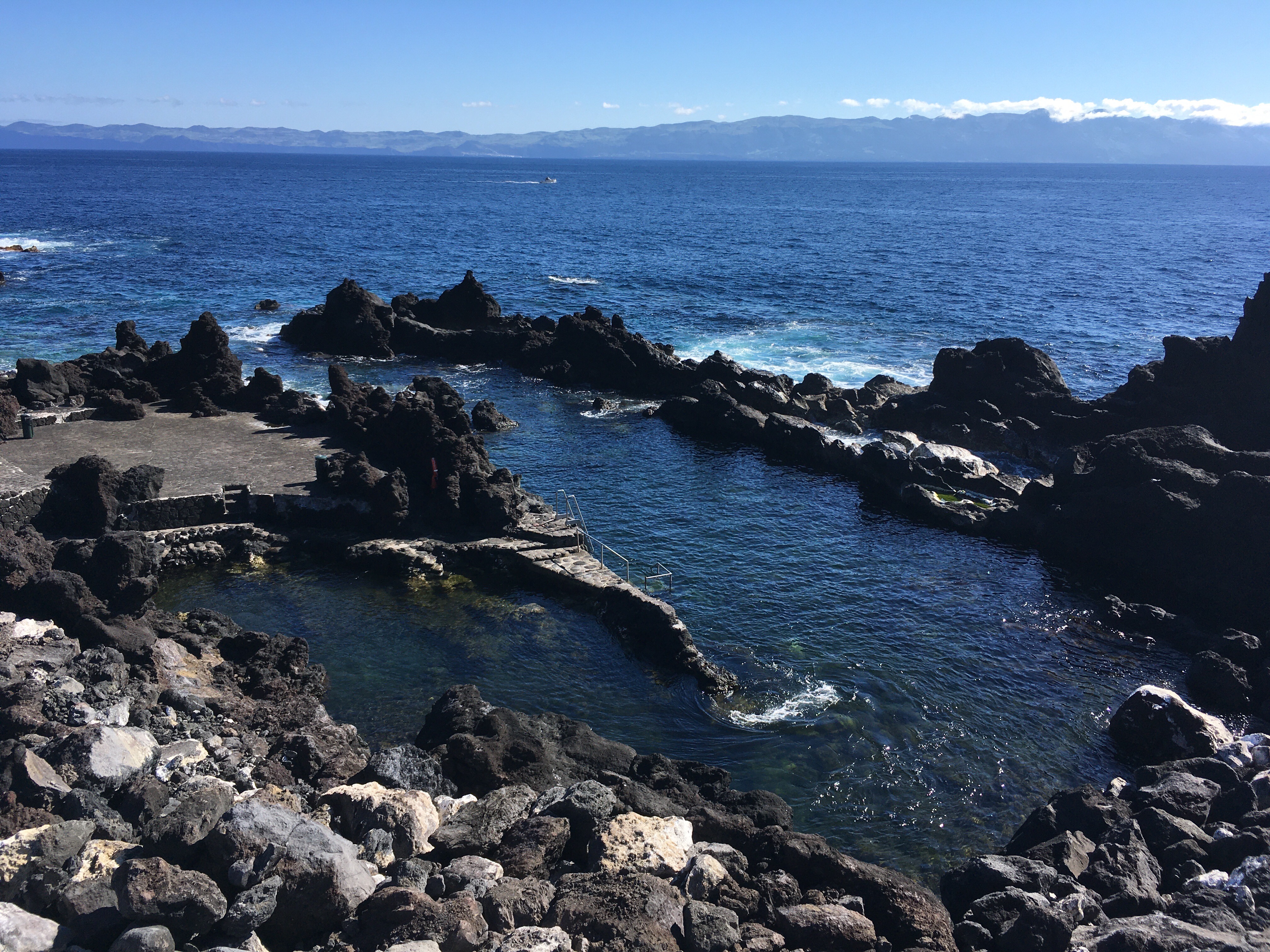 The ferry from Horta to Madalena takes just 30 min and cost 5 euro each return (because we are old). We had a really good driver/guide, João was recommended by another yachtie. Pico is known as the black island, it is the youngest of the 9 Azores islands at only 300,000 years old, all black volcanic rock and no sand to speak of. The north west where we started off is given over to vineyards, apparently the best quality grapes grow nearest the sea, they are planted in little sheltering enclosures, the walls built of black rock of course without mortar like a dry stane wall.