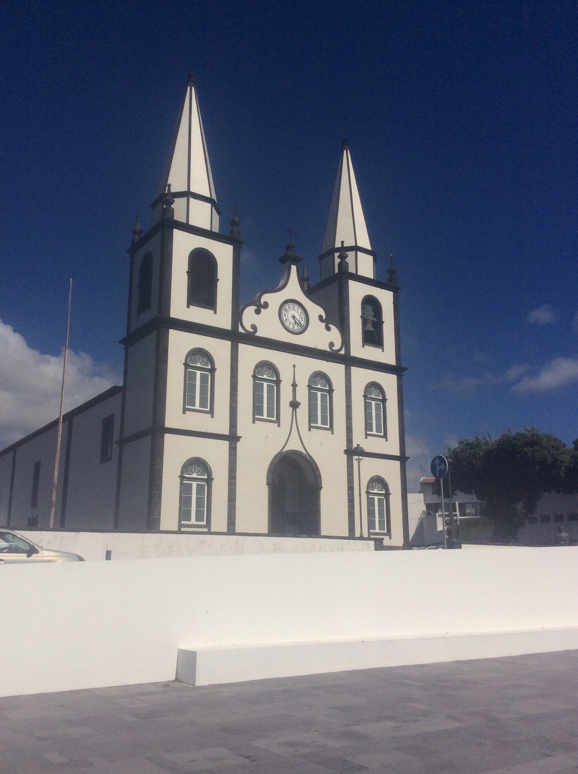 Lastly we went to the beach at Praia do Almoxarife where the weather was a bit better – black sands, clear water and a nice church and gardens.