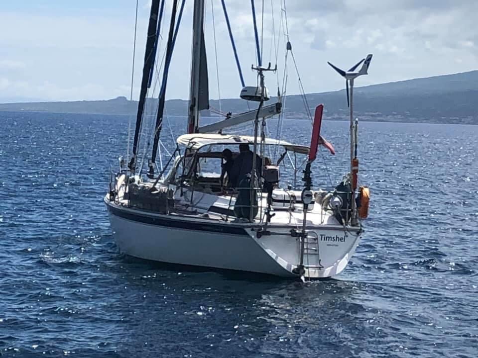 Some of the OCC boats already in the anchorage (that we’d been speaking to on SSB) called on VHF to welcome us – Mirafe, Altarama, Mojito. The RIB from Peter Cafe Sport came alongside. Duarte and friends have been enthusiastically and efficiently supplying the transient yachts sheltering in Horta’s harbour. The Azores and Horta are a major stopping place for transatlantic yachts and fortunately the authorities there decided to continue the tradition in the year of Covid19, even though yachts had to anchor out in the harbour and were not allowed ashore. It was a great relief to know in advance that we could stop for a short while and get fuel and food. The week before we arrived the arrangements changed, yacht crews could get a COVID19 test and then go ashore. I think there was one fast racing multihull that made the trip from Caribbean to Horta in 7 days, but everyone else took 2 or 3 weeks or more for the voyage so having been isolated at sea for that time the tests were going to be negative. On Monday we had to wait for the police boat to bring forms. On Tuesday we had to wait by the radio for the signal to go ashore for the test, Wednesday had to wait by the radio for the (negative) results, then to be called to the marina to check in, Thursday we got diesel and moved into the marina 3 out on the outer wall and could walk ashore. Meanwhile, Monday was Steven’s birthday, I messaged Duarte from Peter Café Sport on WhatsApp and they delivered dinner and groceries. A wonderful service.