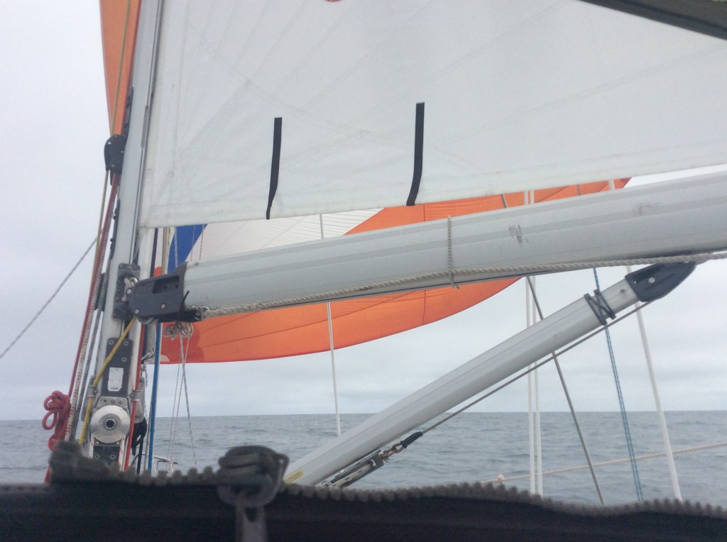 We started off slowly due to little wind, heading north to get the other side of the high pressure. On Day 5 we gybed and altered course to follow the Great Circle route to Fastnet Rock off the SW coast of Ireland, and after this we made good speed with more and favourable wind, we were running wing and wing for several days, just like in the Trades.