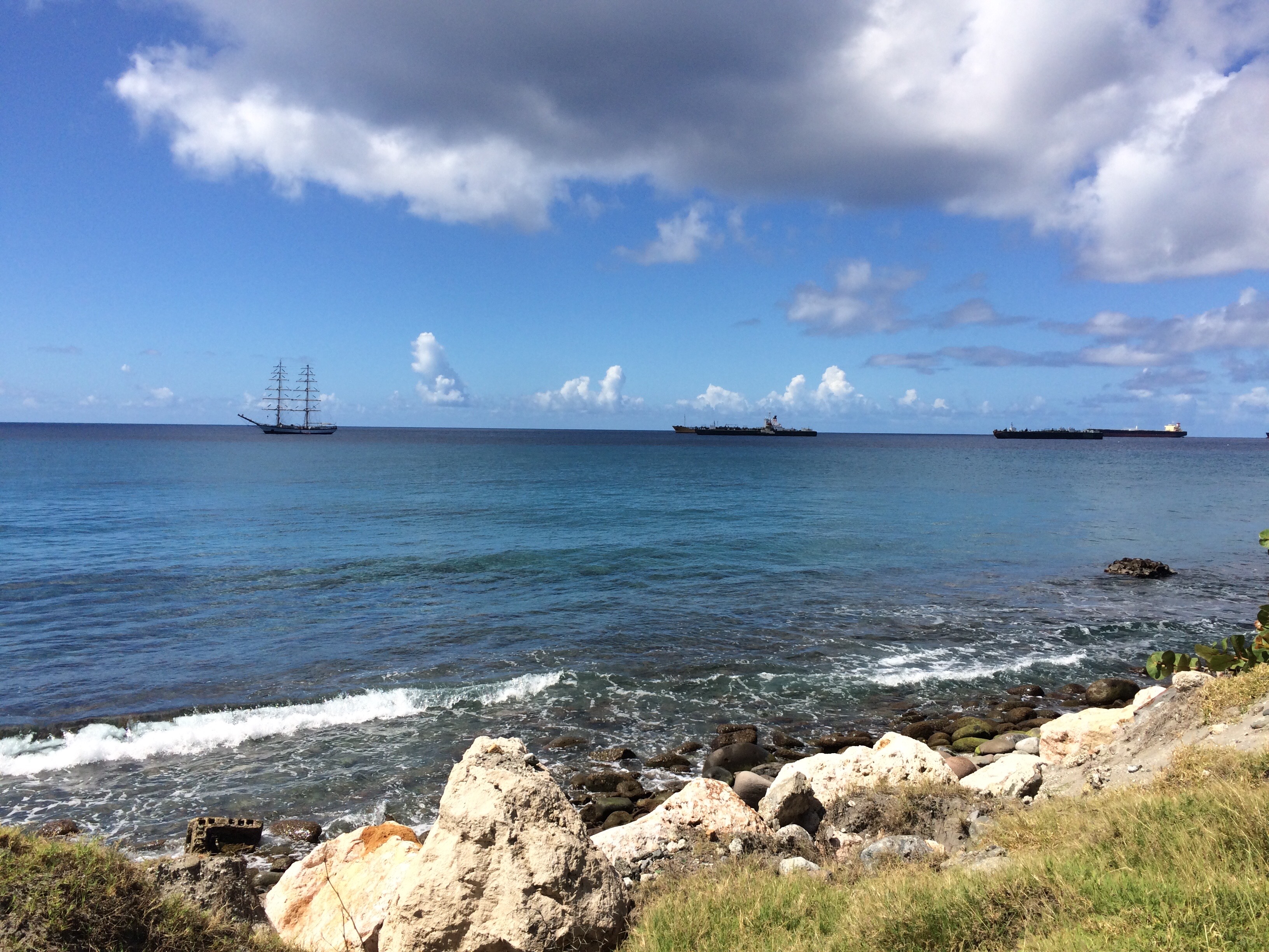 On Monday we went to check out, to be told by Customs at the Port that we had to go to Immigration at the Airport. A kind person gave us a lift. Immigration at the airport said the island was now closed to yachts. We pointed out we were already here and wanted to check out. But she told us we had to do that at the port, apparently we should have used the phone provided there (it was broken and looked like it had been for some time). We did grump a bit about the wasted journey and set off to walk back only to realise that it is such a small island that it wasn’t that far at all. We finally managed to check out when Immigration lady arrived at the port, then went for lunch at the cafe there. We didn’t realise this would be our last meal out for 2 months. We watched a couple of yachts turned away while we ate, so when we departed next morning we were the last yacht at Statia.