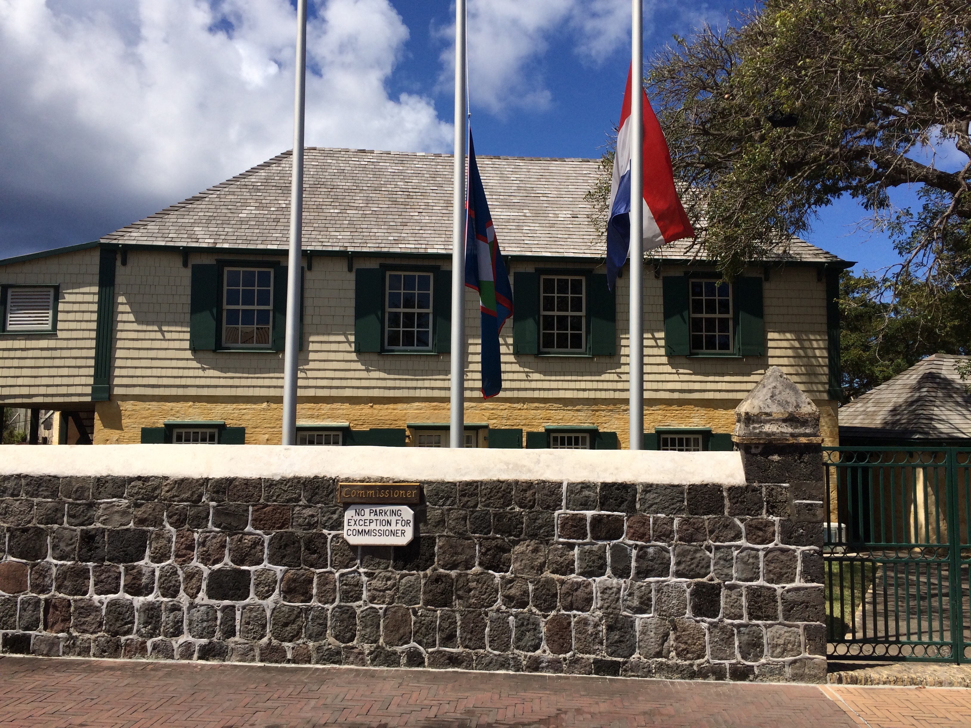 This is a small island, part of the Dutch Antilles and famous as a trading port. I guess the island was not suitable for plantations. It is no longer duty-free but somewhat incongruously has a huge oil terminal and lots of moored tankers. There is no good anchorage. There used to be visitors buoys off the main town of Oranjestad but none were to be seen now, so we anchored in suitable depth, rolling heavily. It was calmer next day when we went to check in at the port. Sort of Handwashing facilities were provided. There is a steep climb up from the port area up to the main town, where you find picturesque half timbered buildings and neatly laid out streets all meticulously labelled with street names but no signs giving helpful directions (e.g. to the airport or anywhere). Everywhere was extremely quiet and sleepy as we wandered round the pretty town. Not sure if this was due to virus – there are warning signs everywhere – or the funeral of a local dignitary – flags were at half mast.