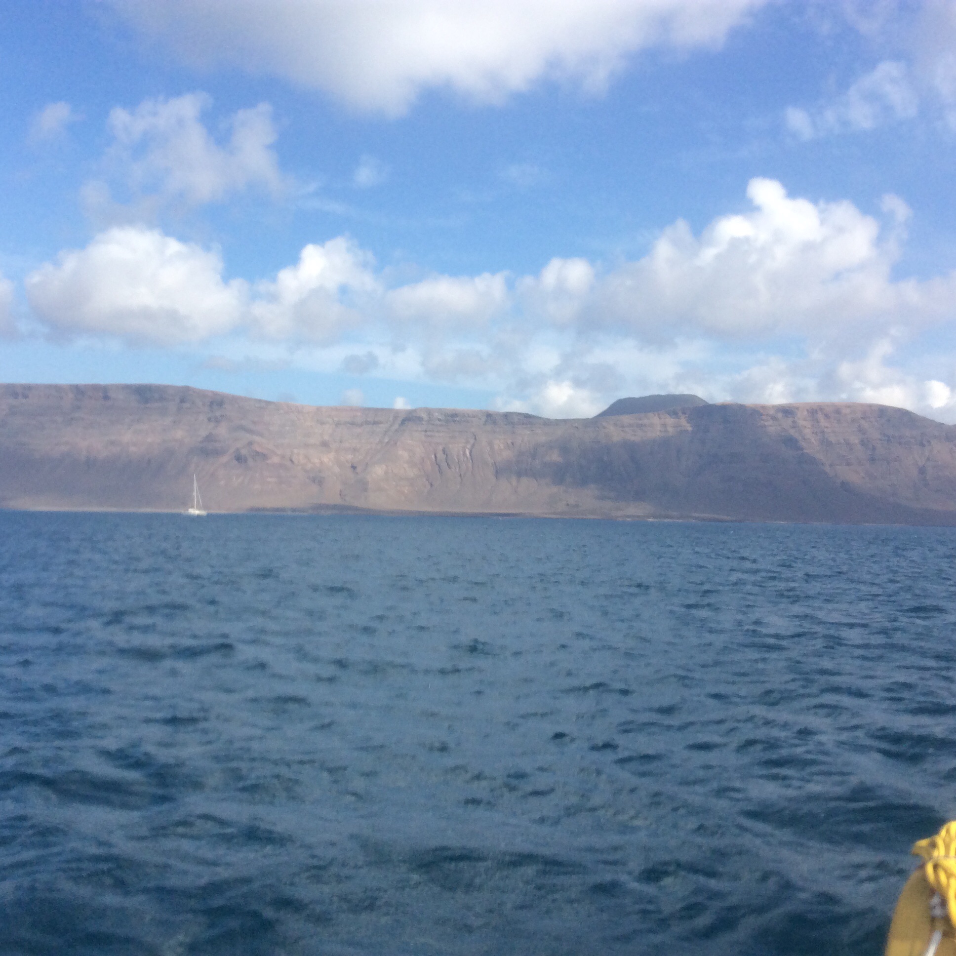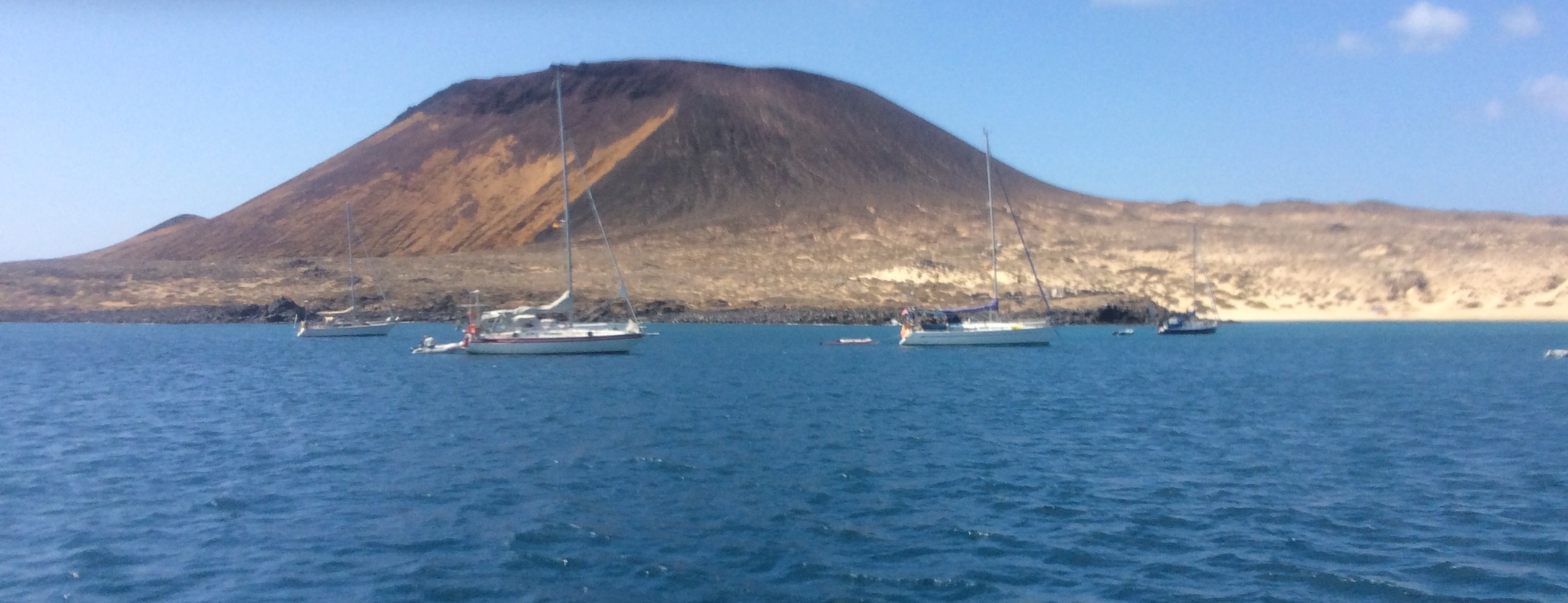 We anchored at Playa Francesca on Isla Graciosa at the N end of Lanzerote mid-afternoon. This must be the best anchorage in Lanzarote so there were lots of boats there, including some we’d met before. Also met Tony with 21ft Mini-transat called Splinter who is heading for New Zealand. He was looking to swap books with other British yachts, not so easy as it used to be as most are now reading electronic rather than paper books. Spent a few days lazing about and swimming and snorkelling off the beautiful beach (there is nothing else there), lots of beautiful coloured fish to see