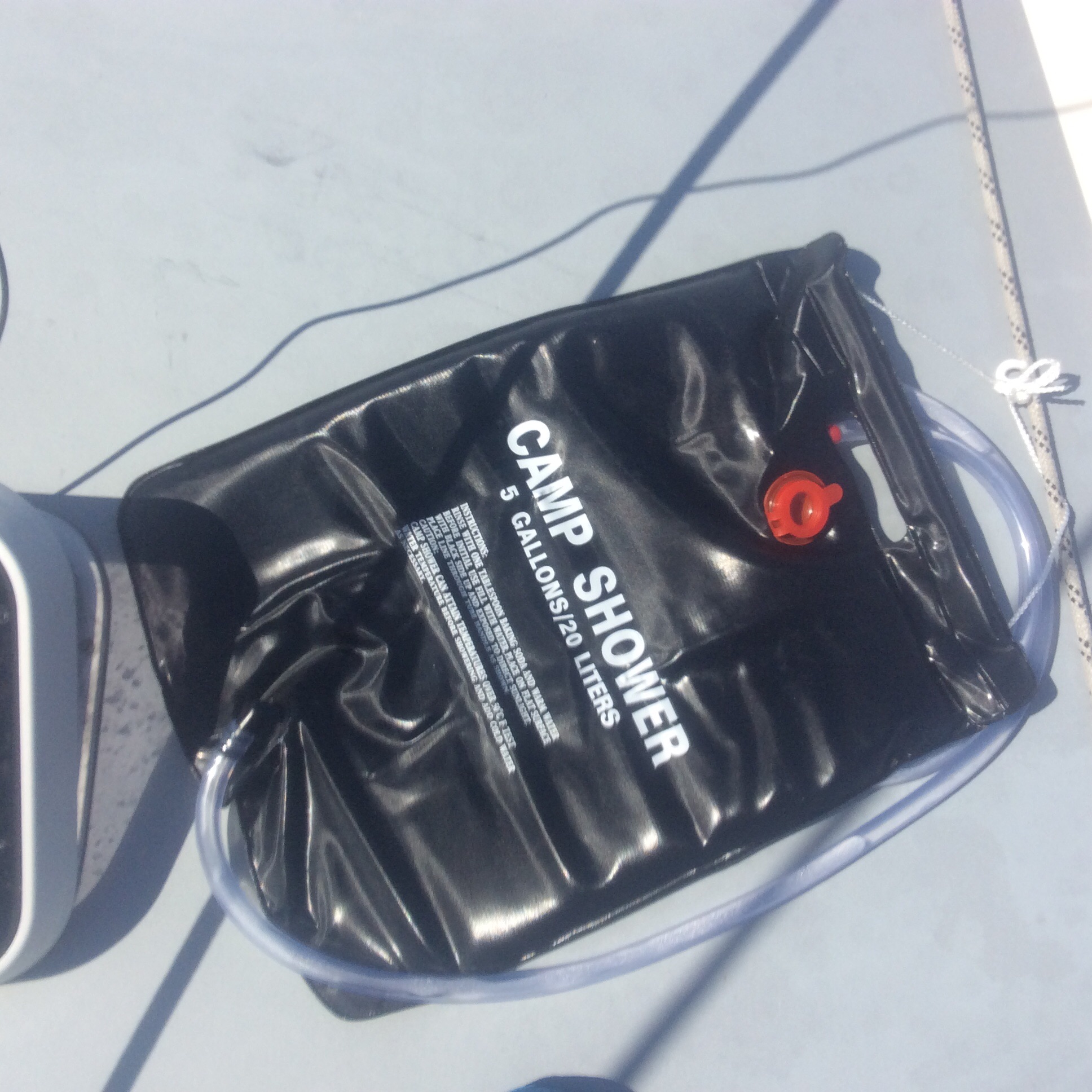 over the rocks. Some work done. – we tried the water maker for the first time. Got fresh water from the sample port but the connection to send it into the water tank is not correct, seems to be trying to go in the out pipe so don’t think will work. We collected some and put in the solar deck shower (also used for first time) and Steve had a shower after swimming.